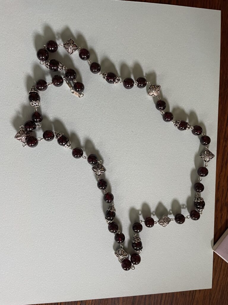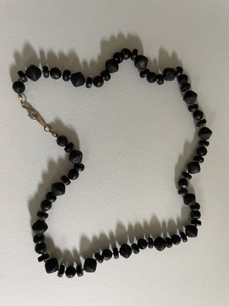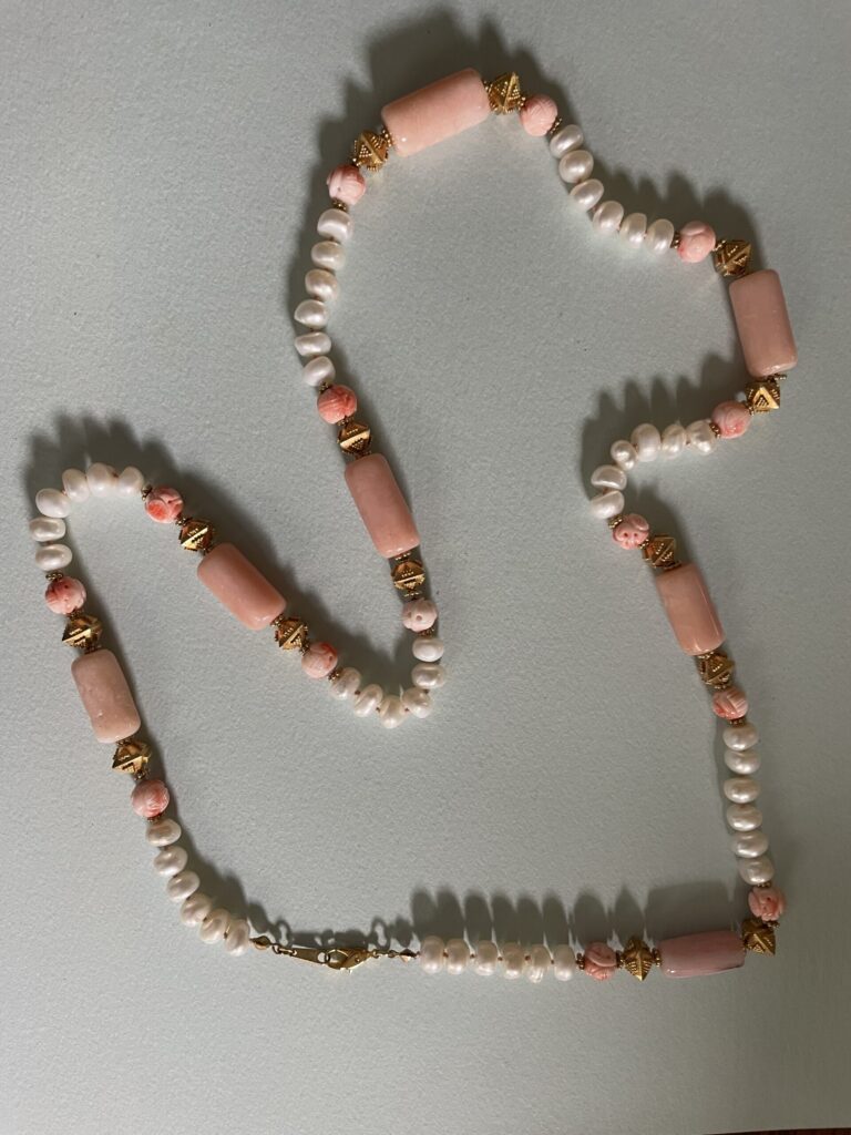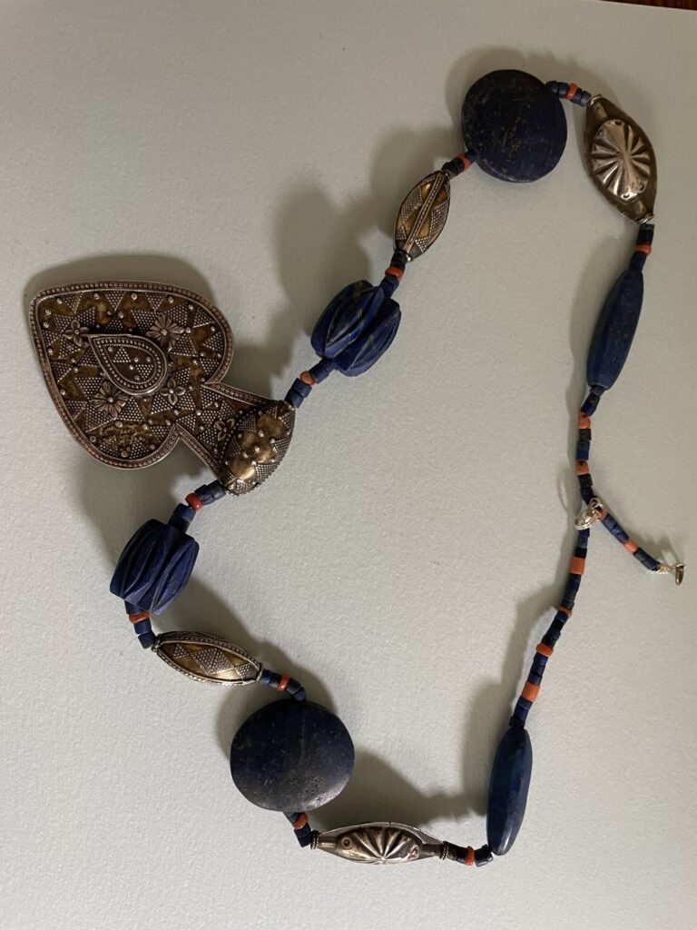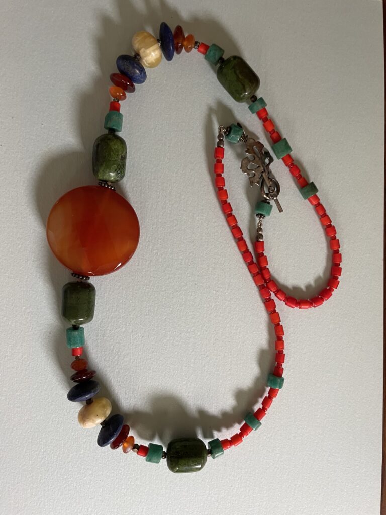 We include below photographs of Freddie’s necklaces, but we would like photos of the many, many necklaces that are out in the world! So if you have a Freddie Baer necklace or other jewelry, please photograph it, tell its story, and share it with us at contact@freddiebaer.com.