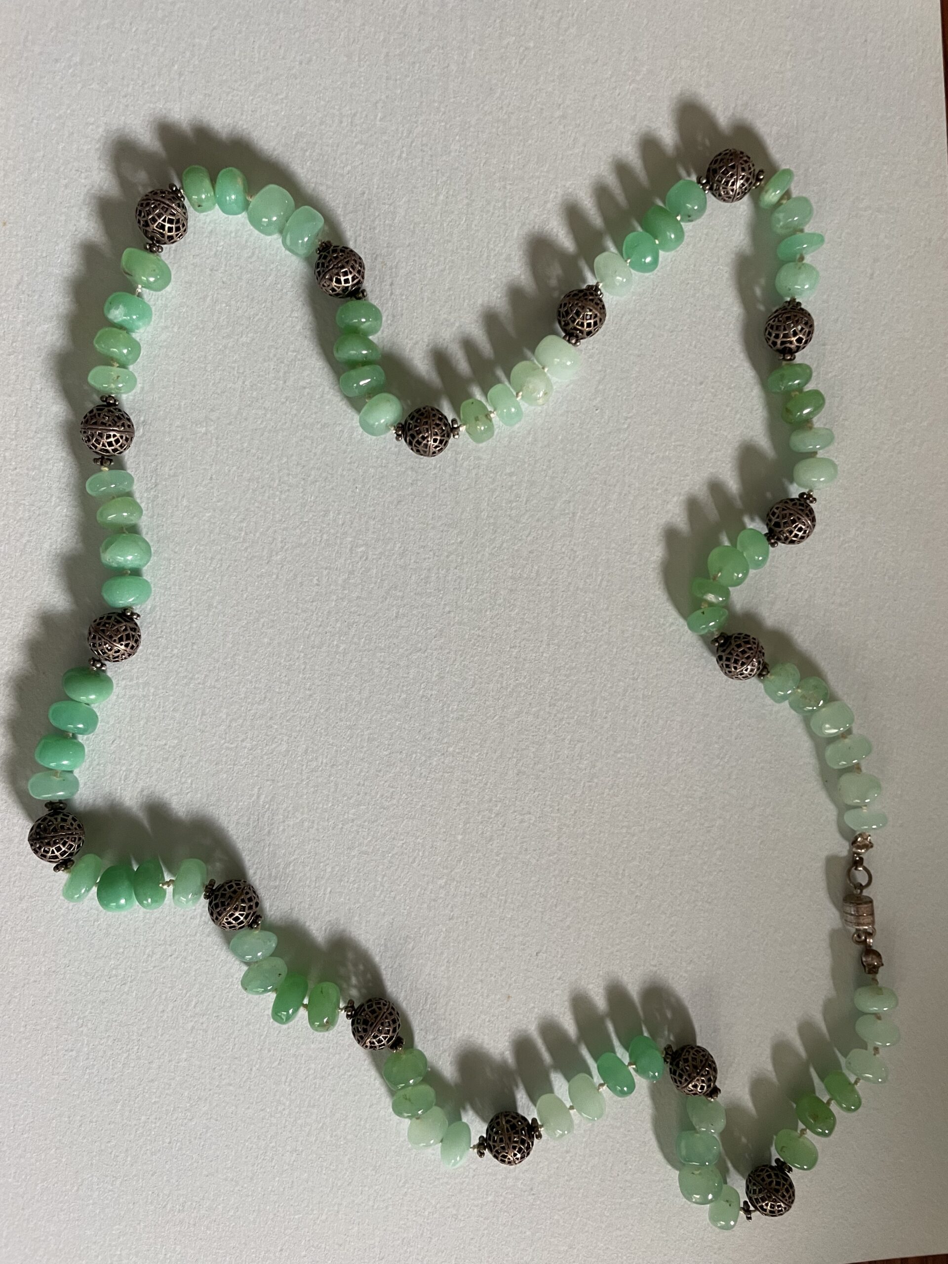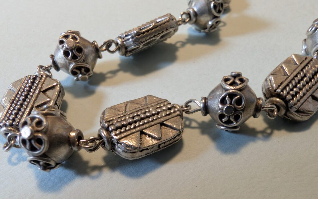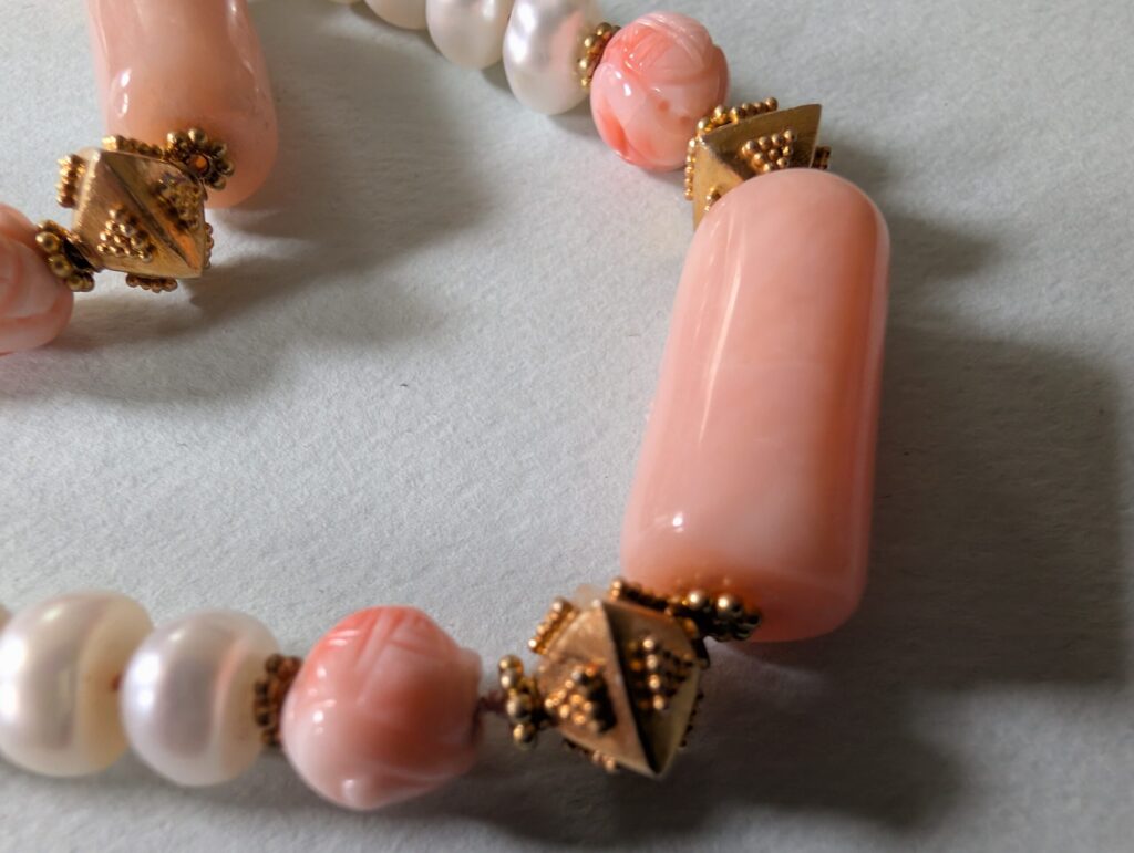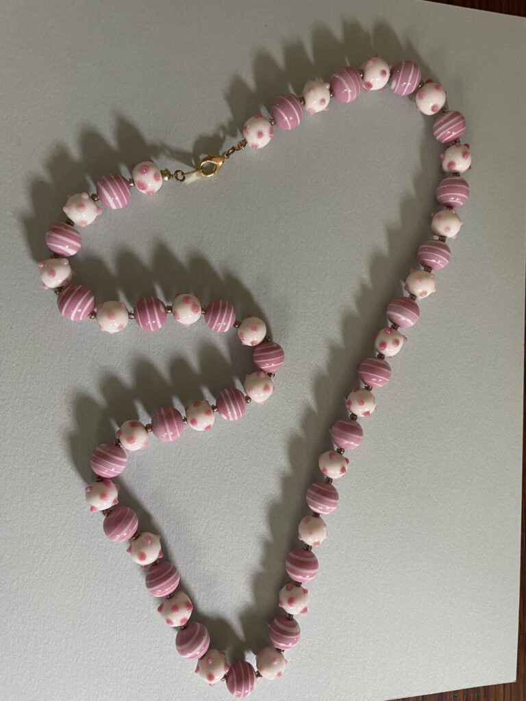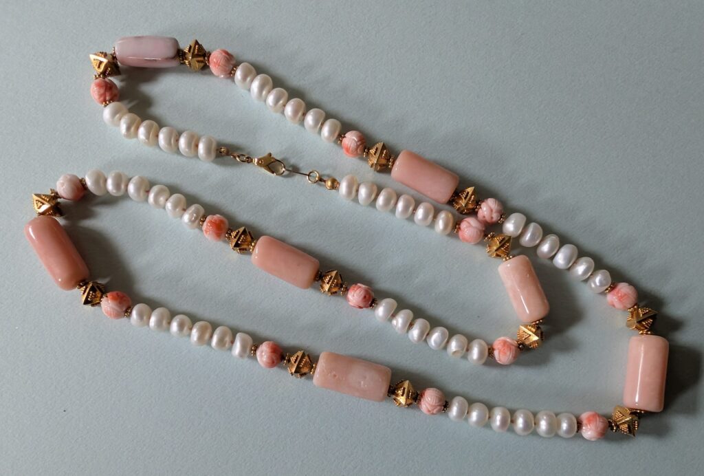 We include below photographs of Freddie’s necklaces, but we would like photos of the many, many necklaces that are out in the world! So if you have a Freddie Baer necklace or other jewelry, please photograph it, tell its story, and share it with us at contact@freddiebaer.com.