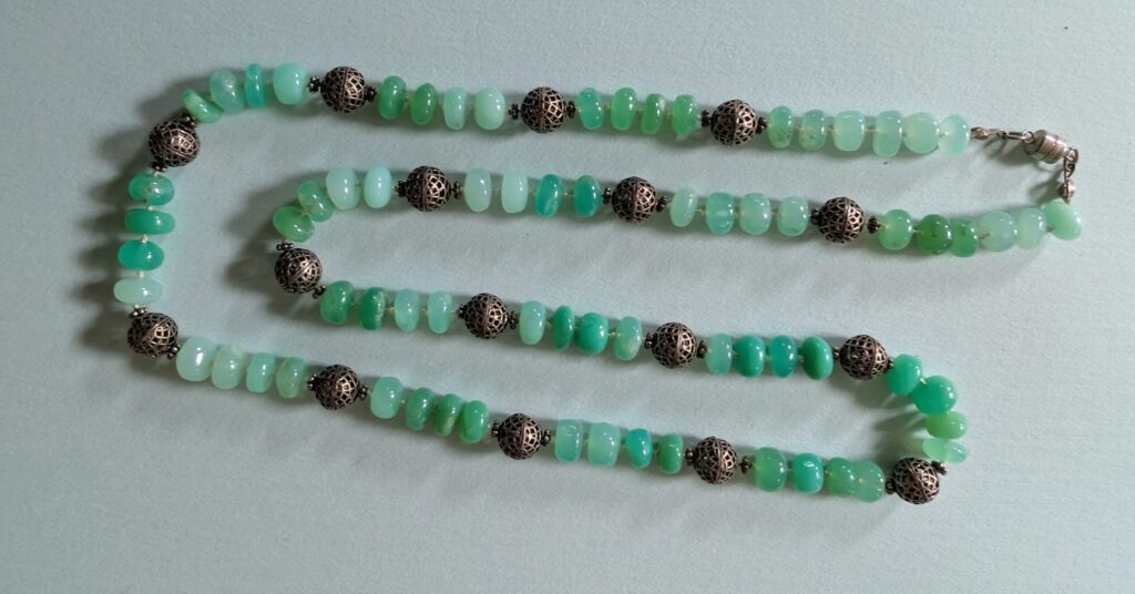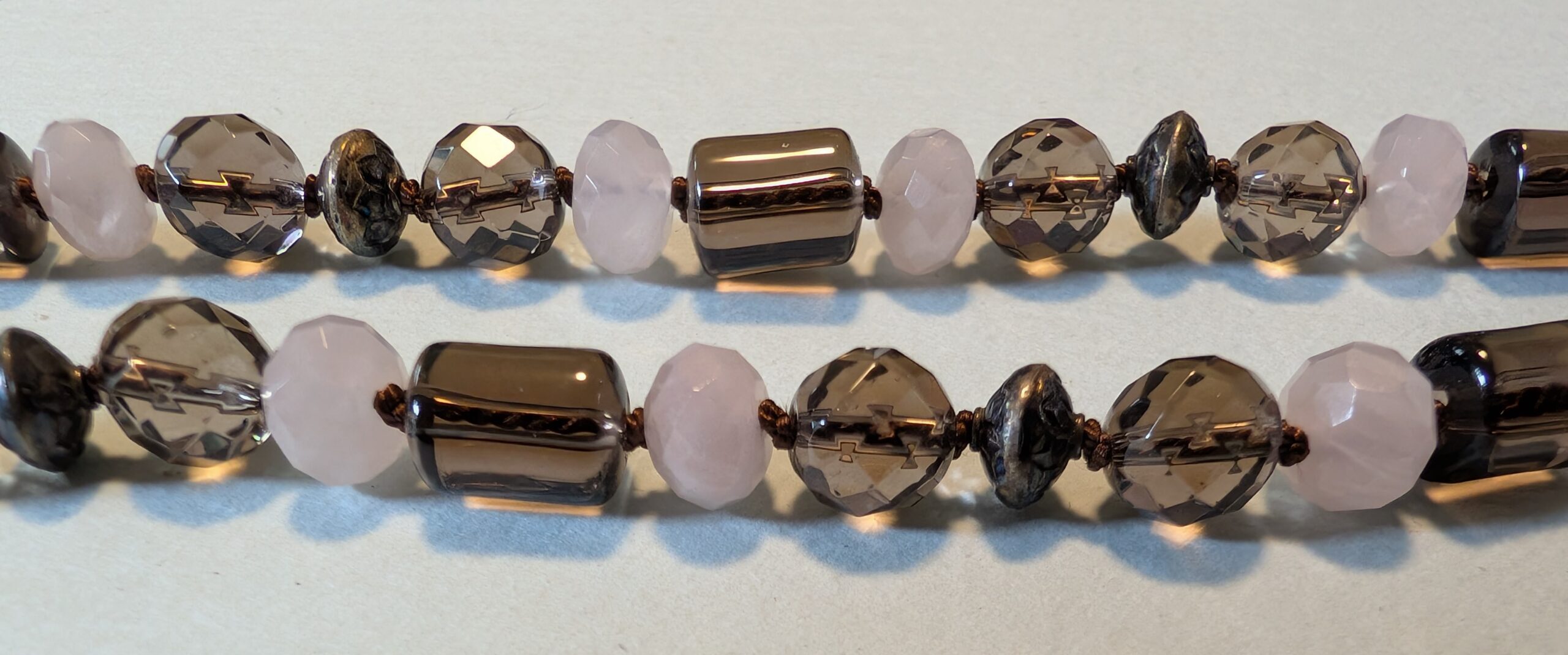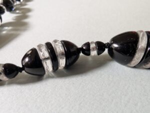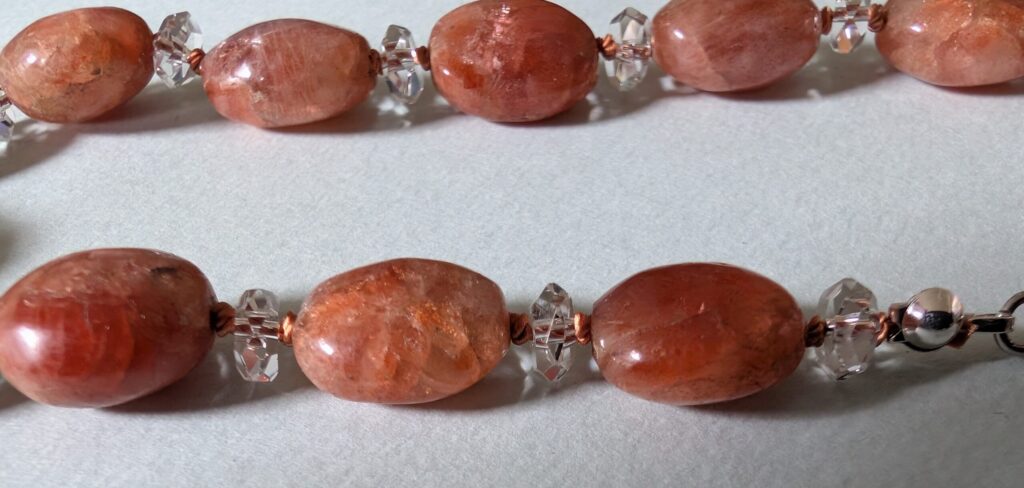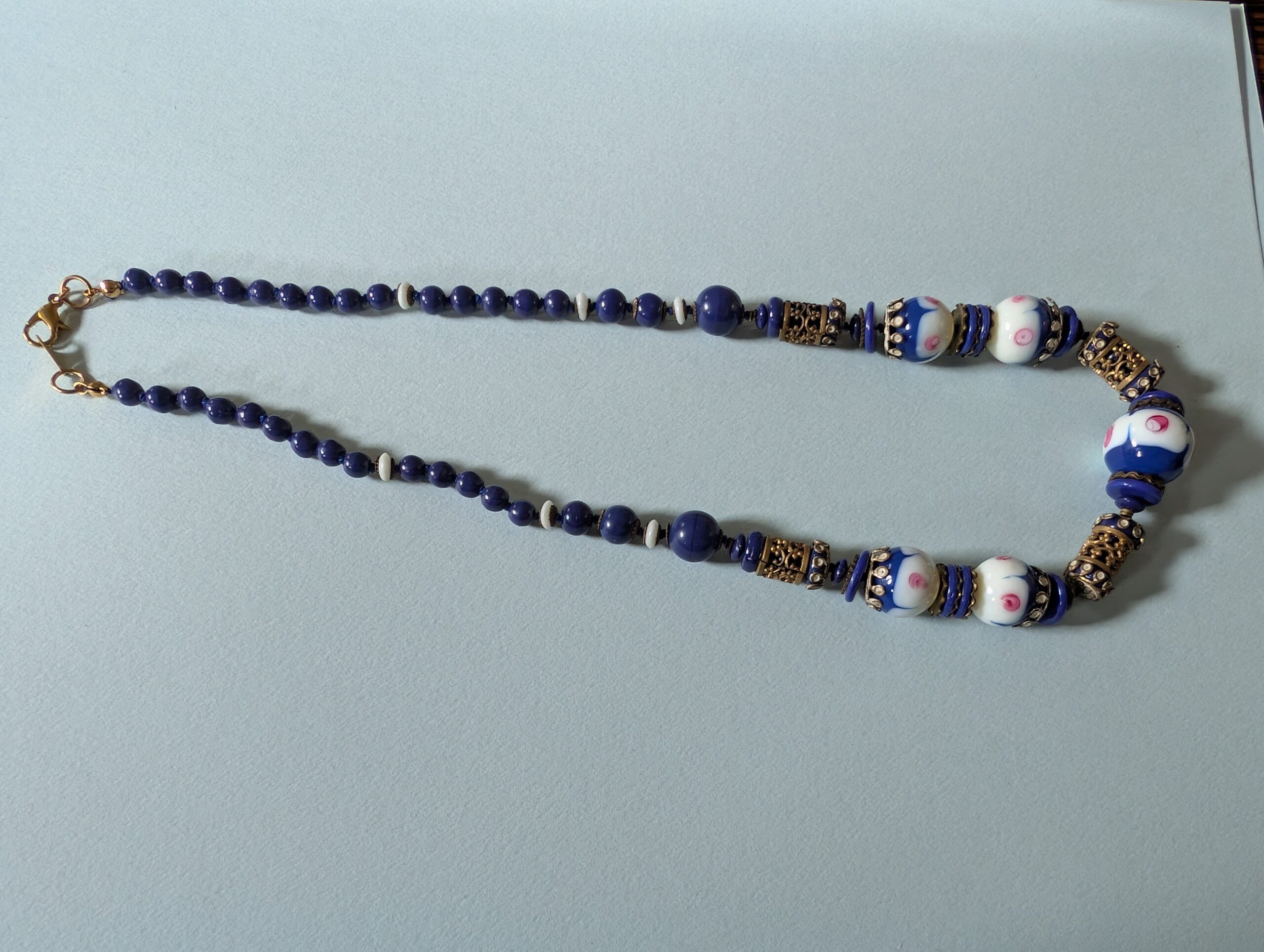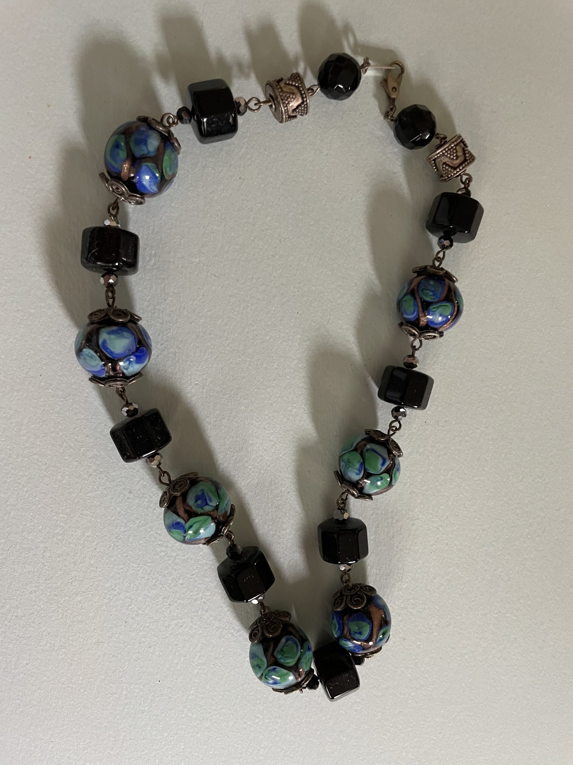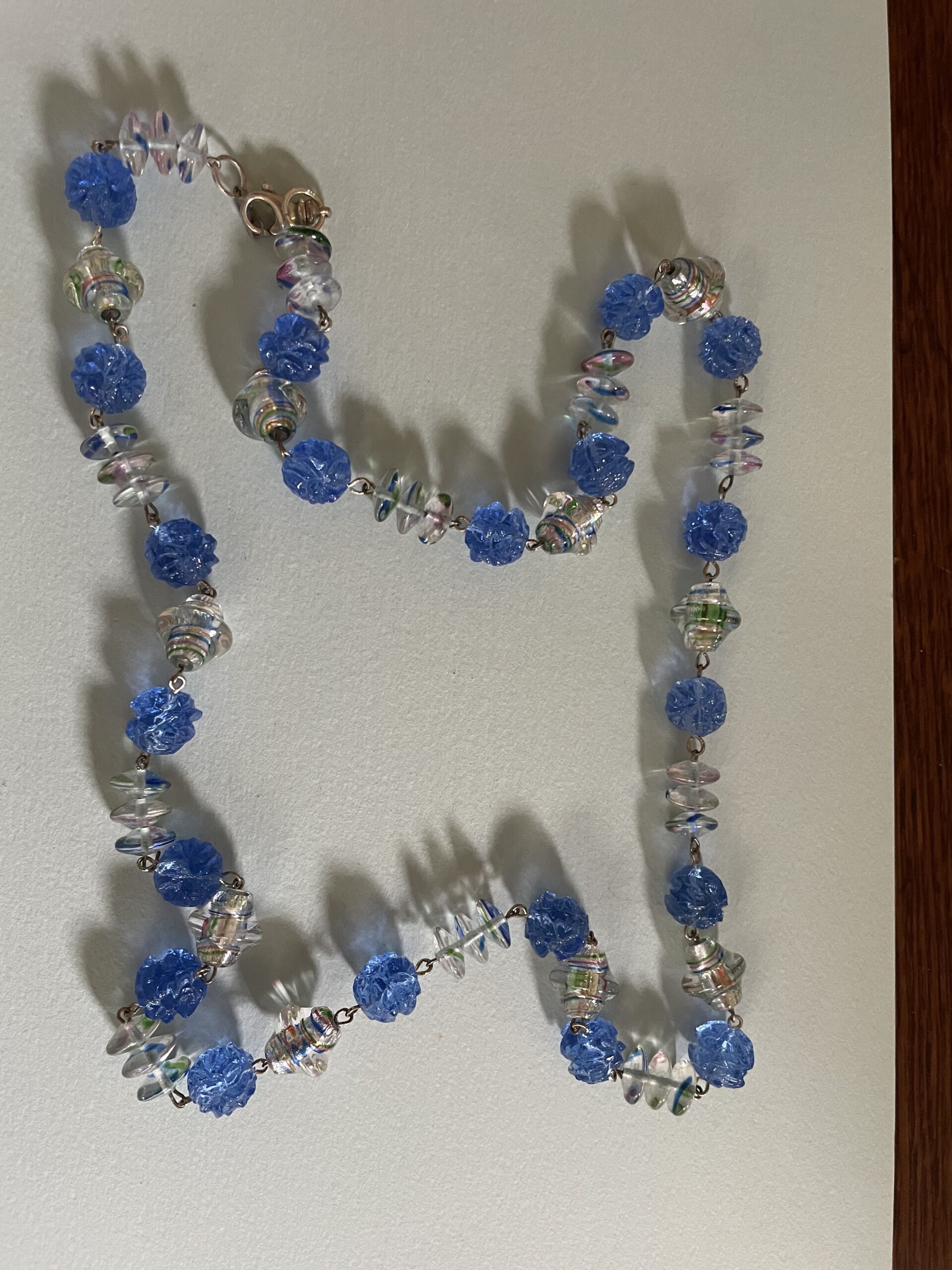 Necklaces are labeled to enable us to keep photos of the same necklace together. Numbers (e.g., “Eureka necklace 1”) have no significance other than the order in which we numbered them — that is, the numbers have no connection whatsoever with when they were made, type of beads, or anything else.