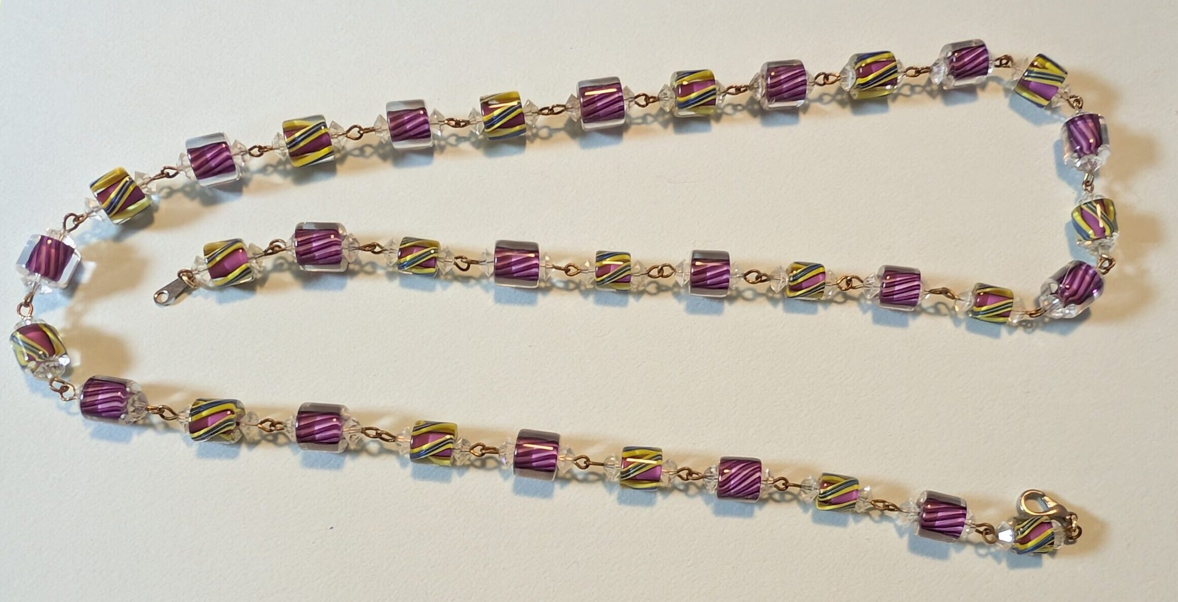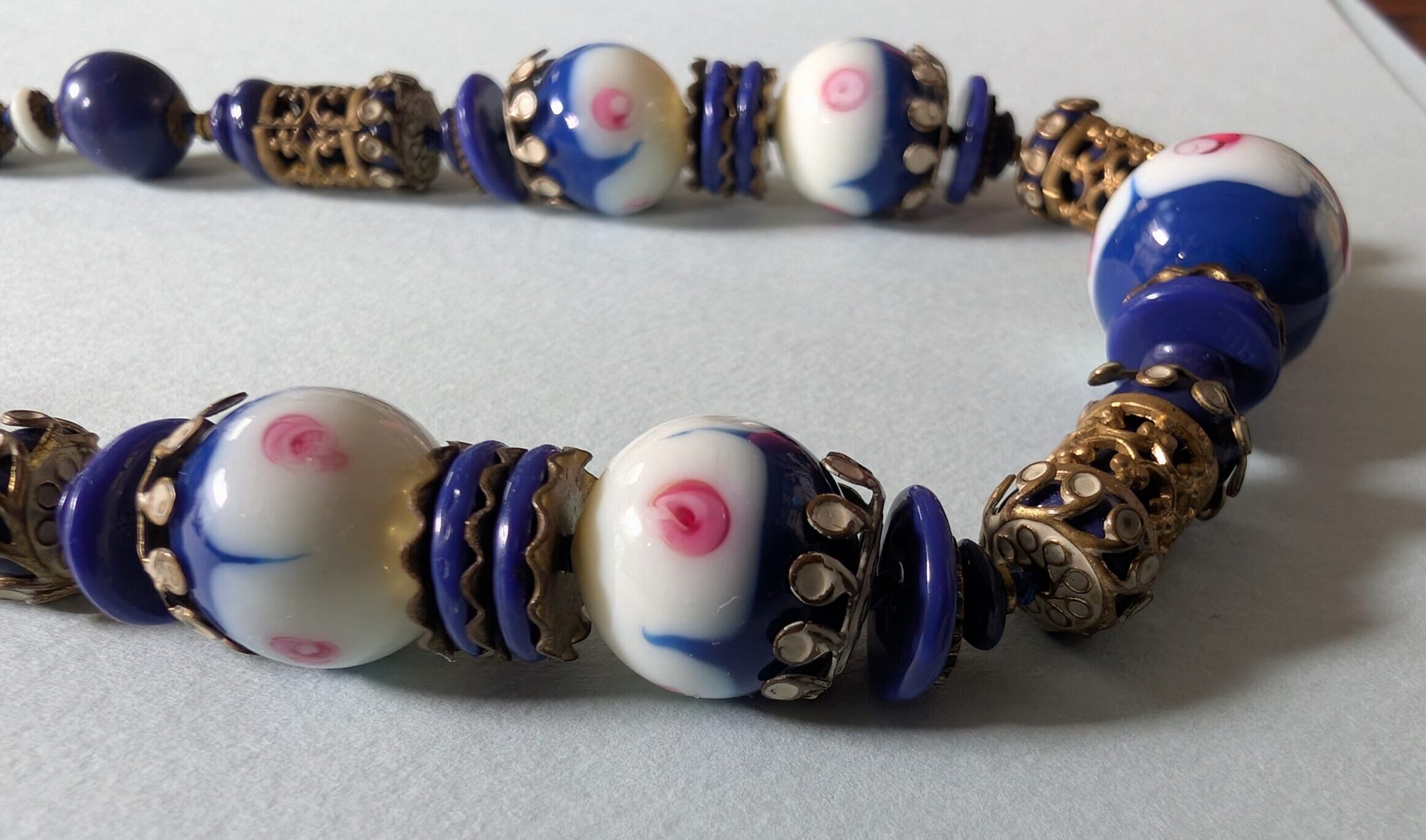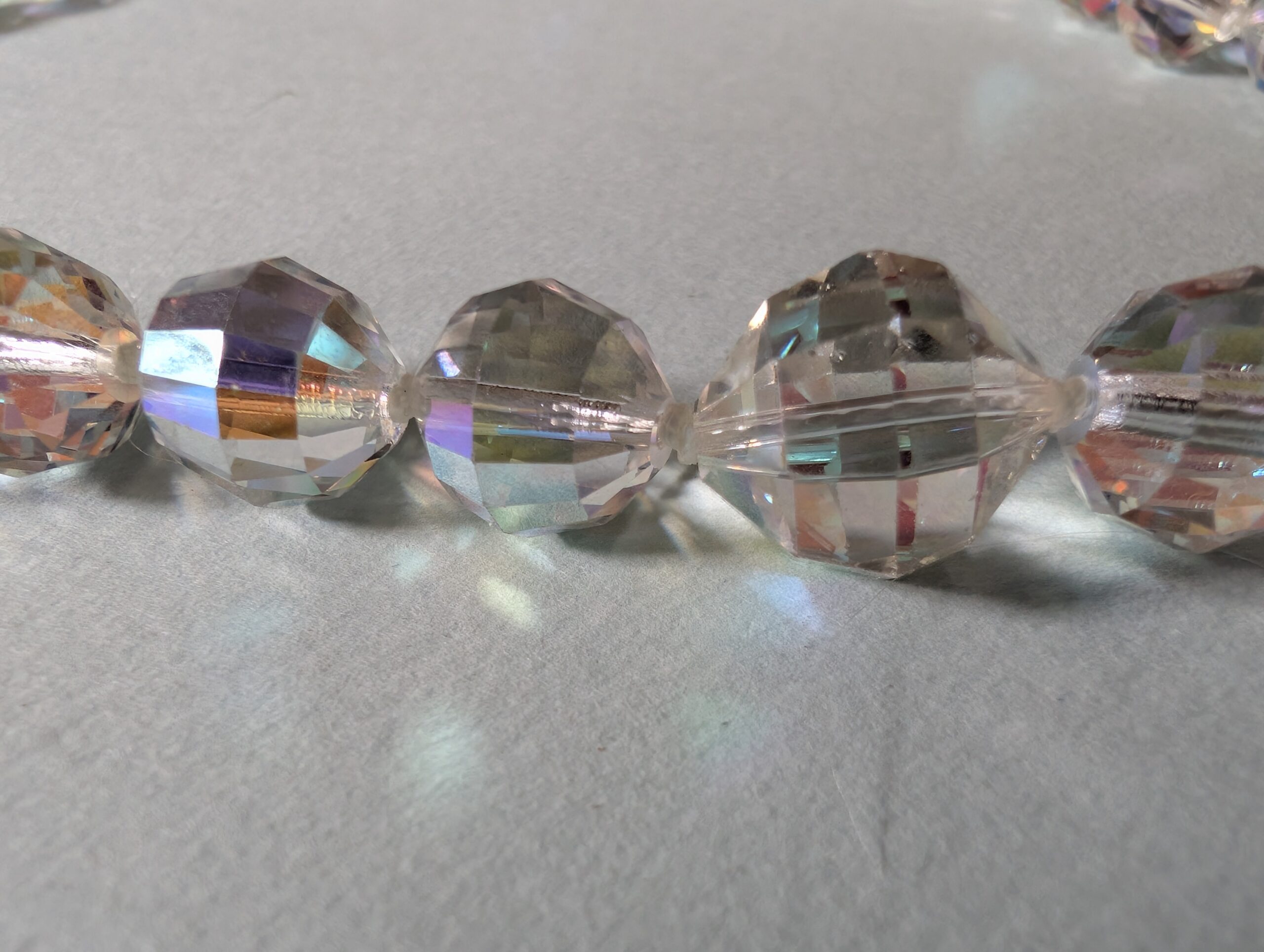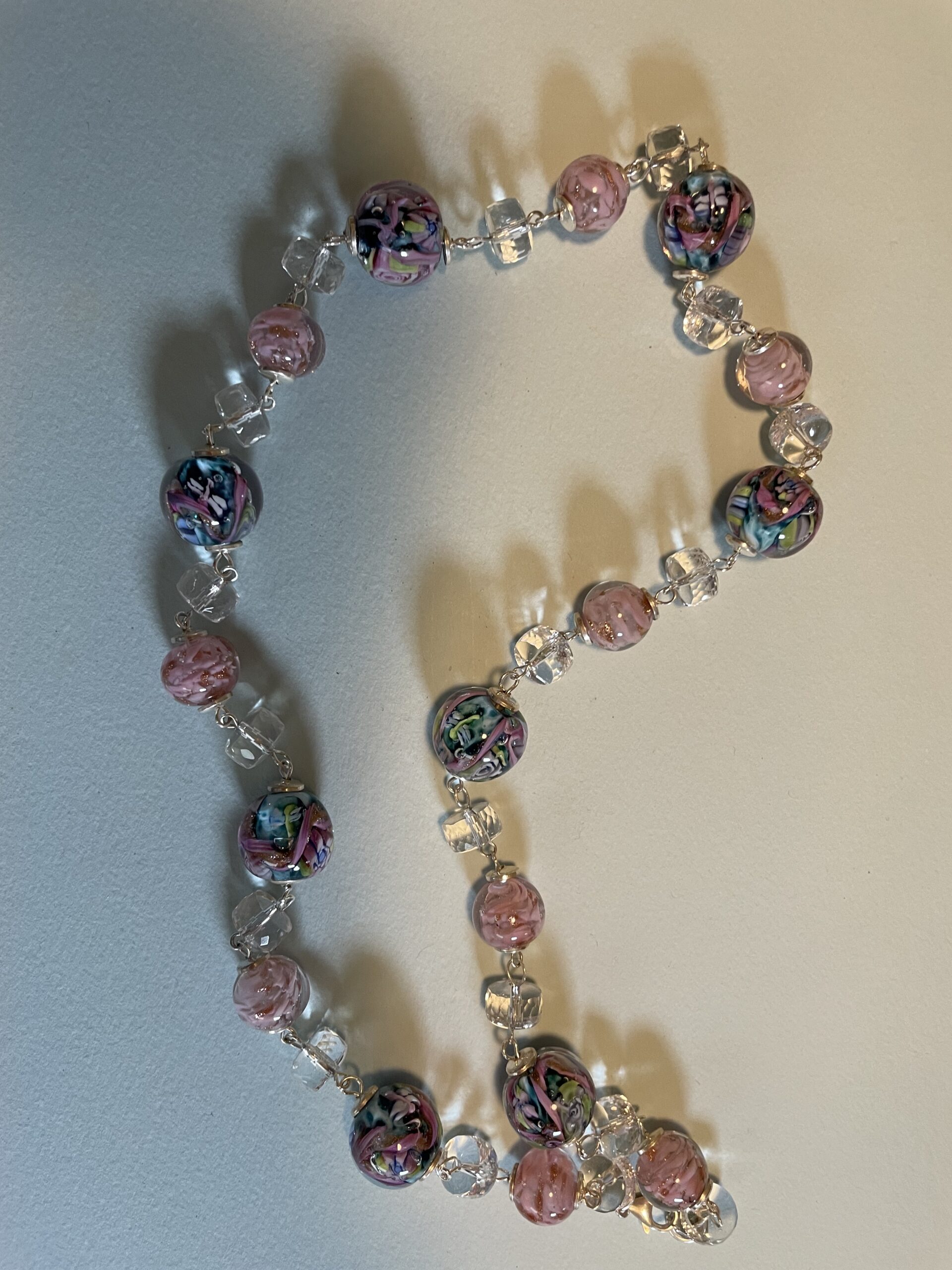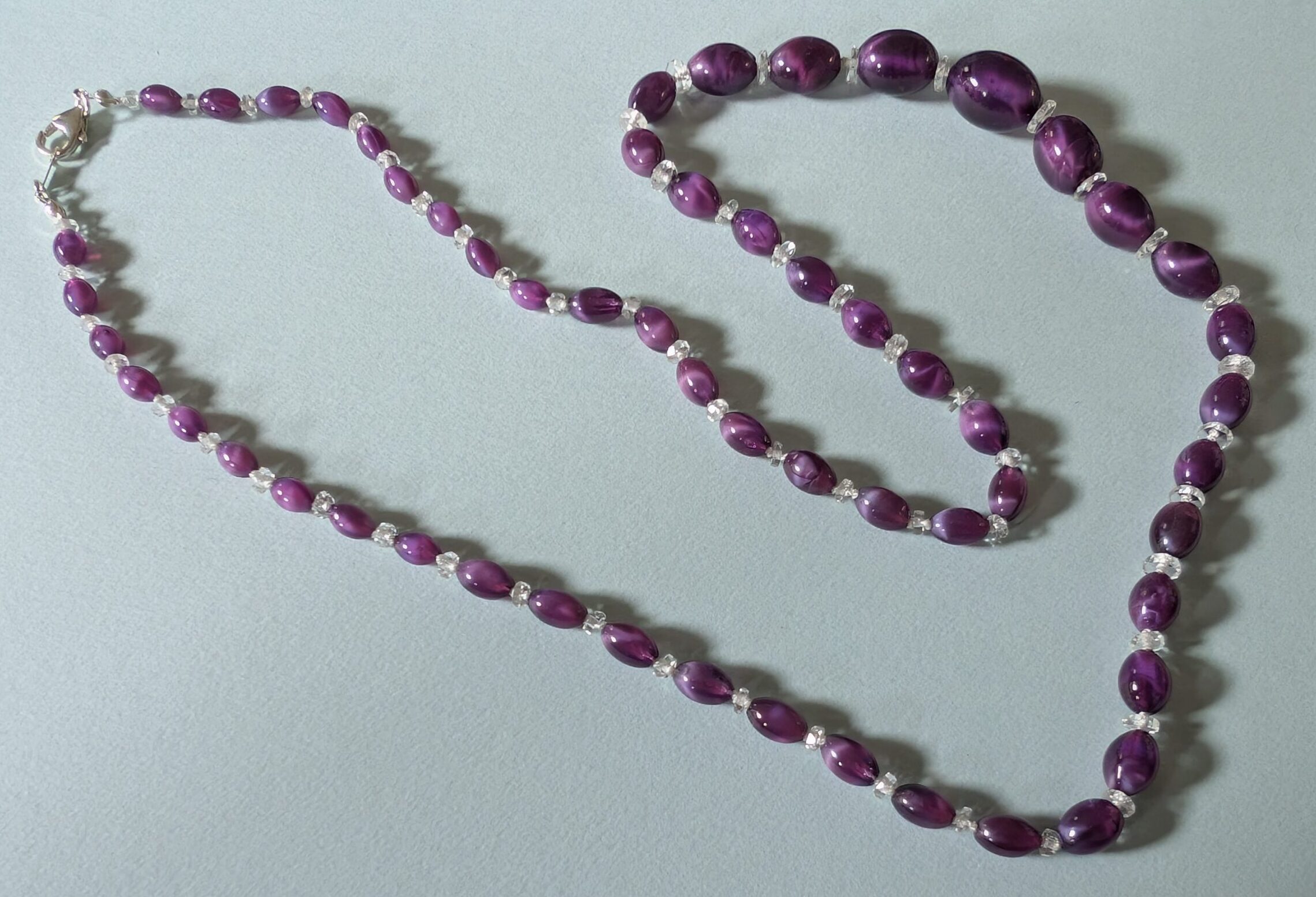 Necklaces are labeled to enable us to keep photos of the same necklace together. Numbers (e.g., “Eureka necklace 1”) have no significance other than the order in which we numbered them — that is, the numbers have no connection whatsoever with when they were made, type of beads, or anything else.