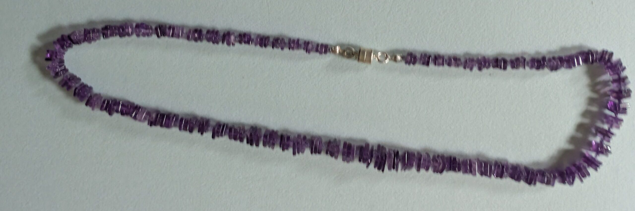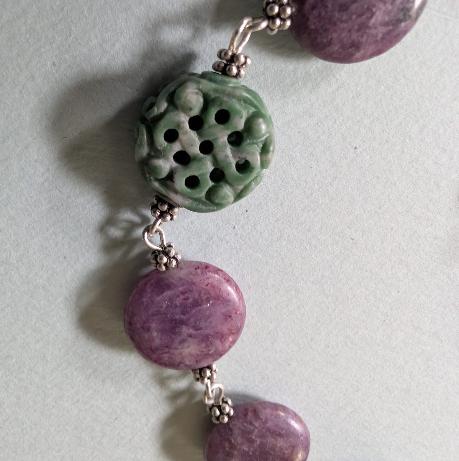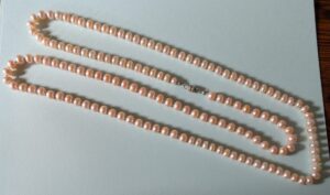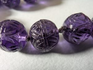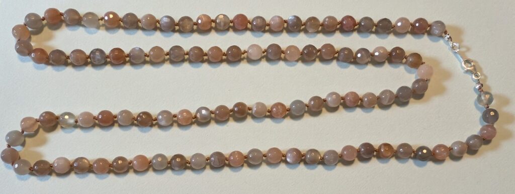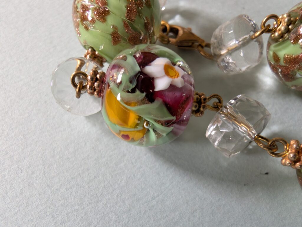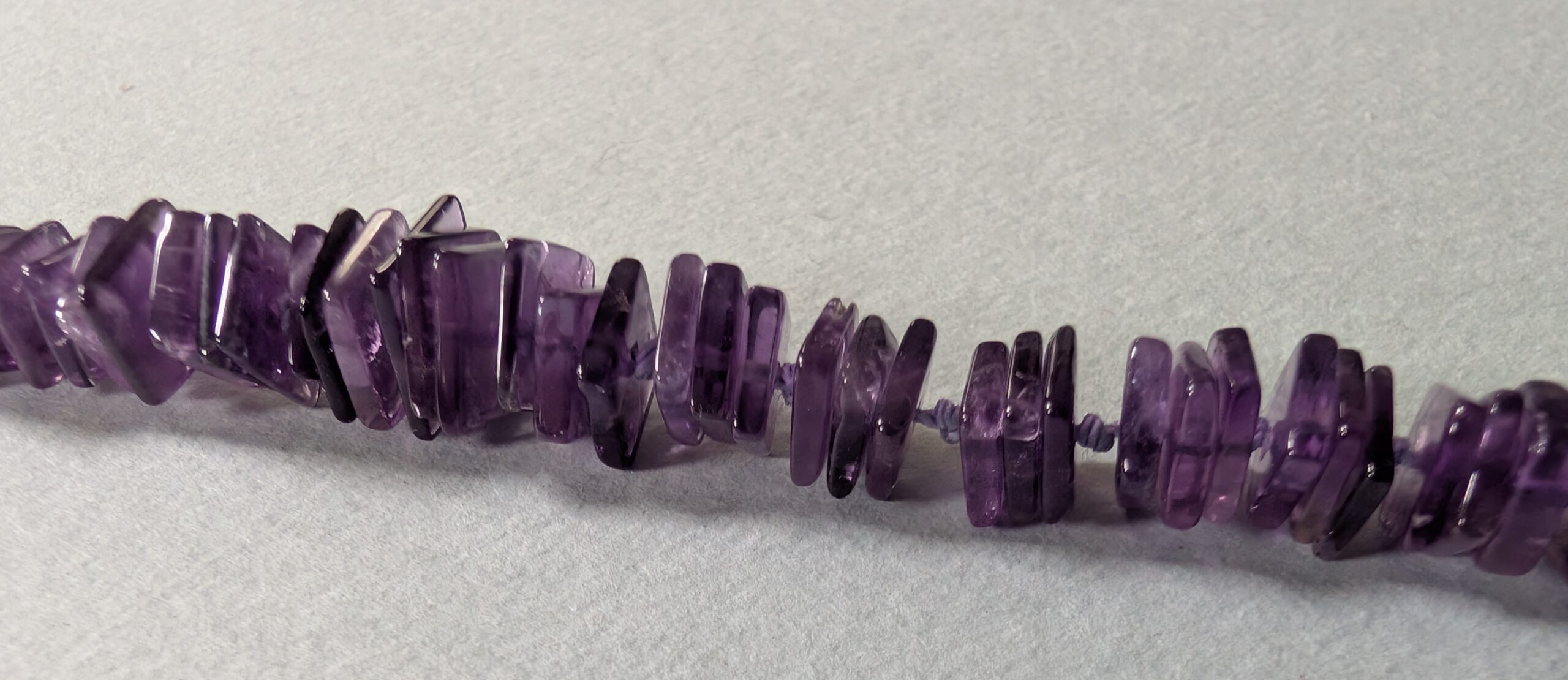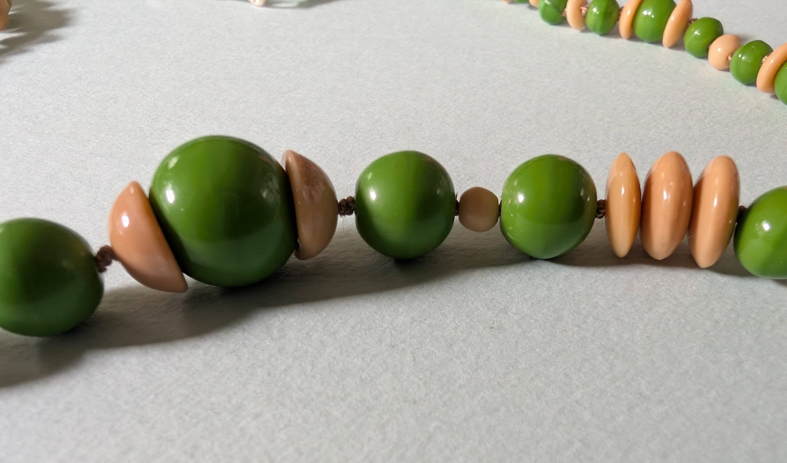 Necklaces are labeled to enable us to keep photos of the same necklace together. Numbers (e.g., “Eureka necklace 1”) have no significance other than the order in which we numbered them — that is, the numbers have no connection whatsoever with when they were made, type of beads, or anything else.