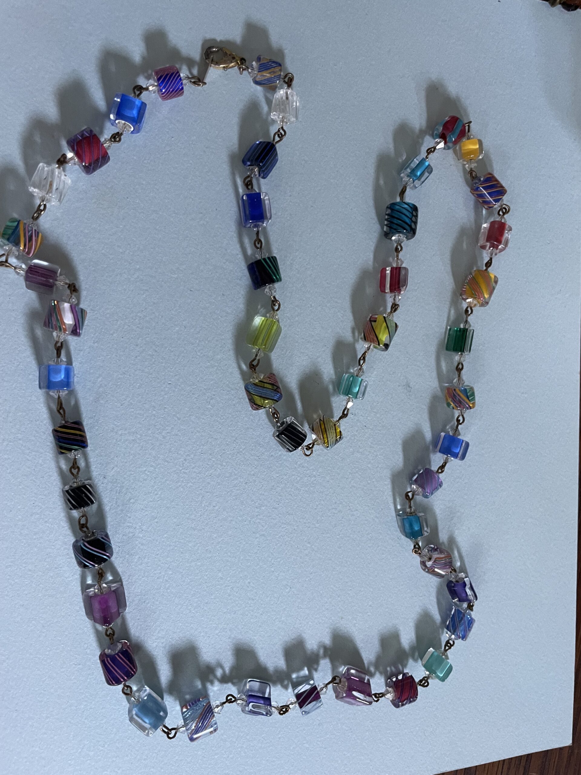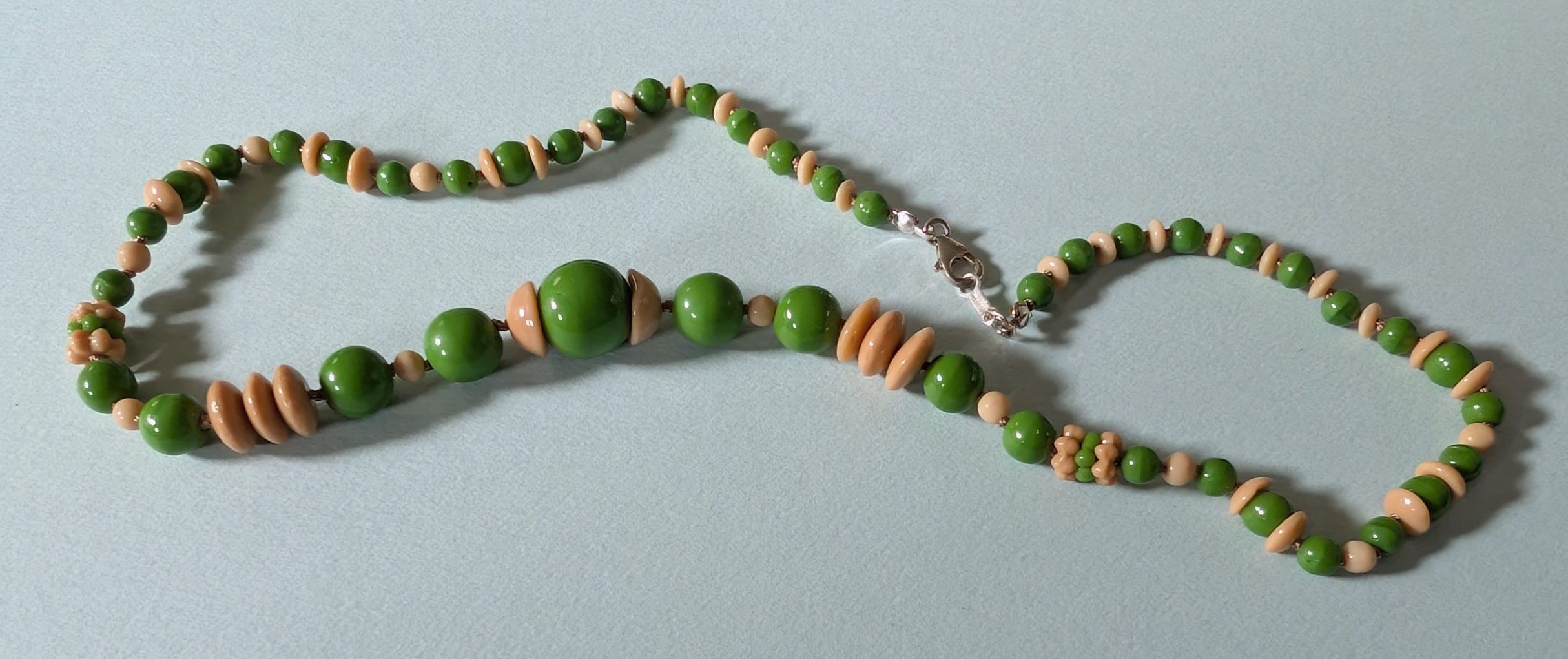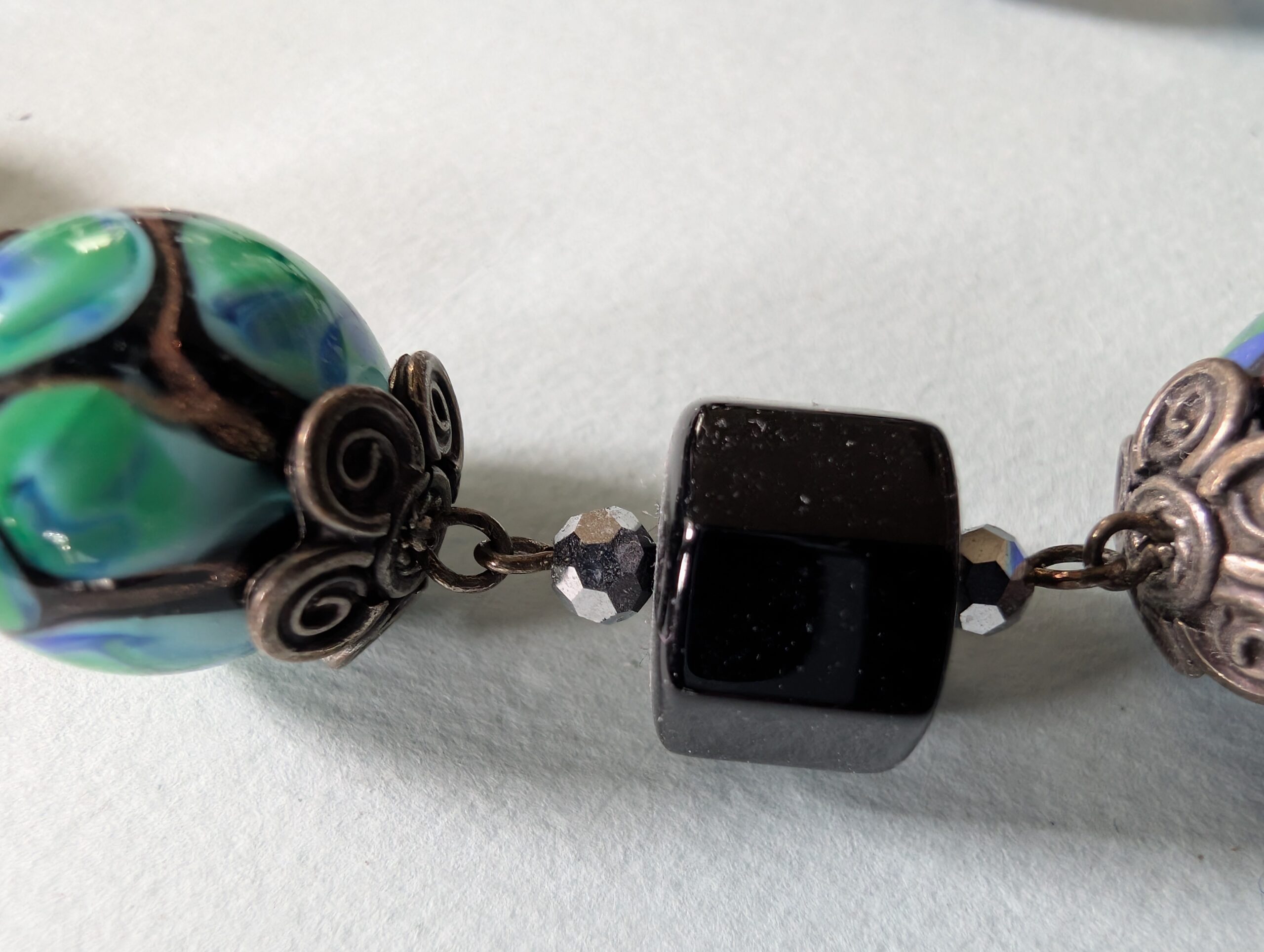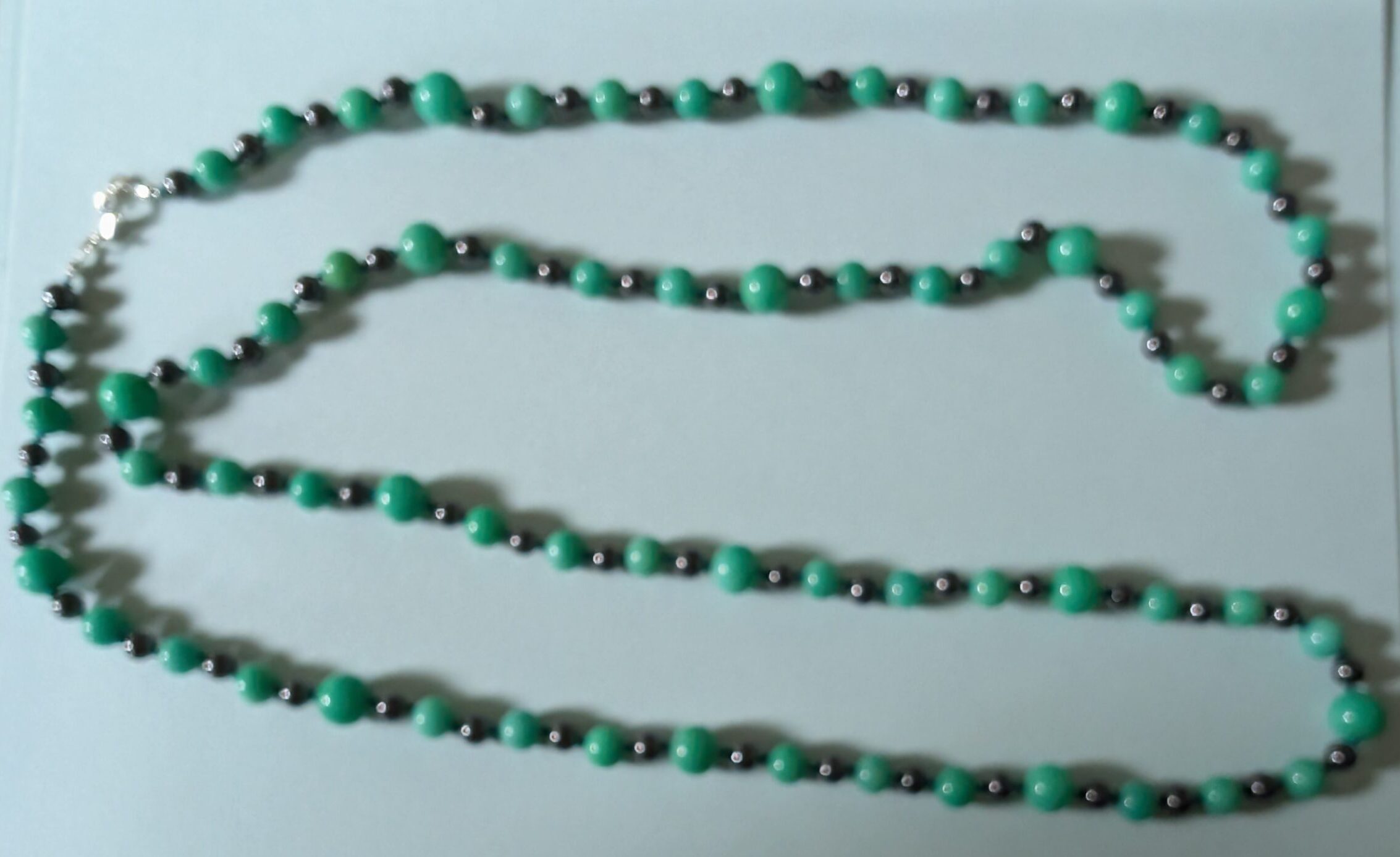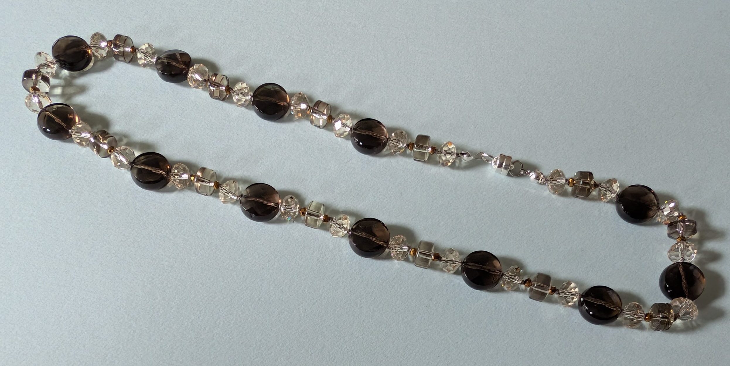 Necklaces are labeled to enable us to keep photos of the same necklace together. Numbers (e.g., “Eureka necklace 1”) have no significance other than the order in which we numbered them — that is, the numbers have no connection whatsoever with when they were made, type of beads, or anything else.