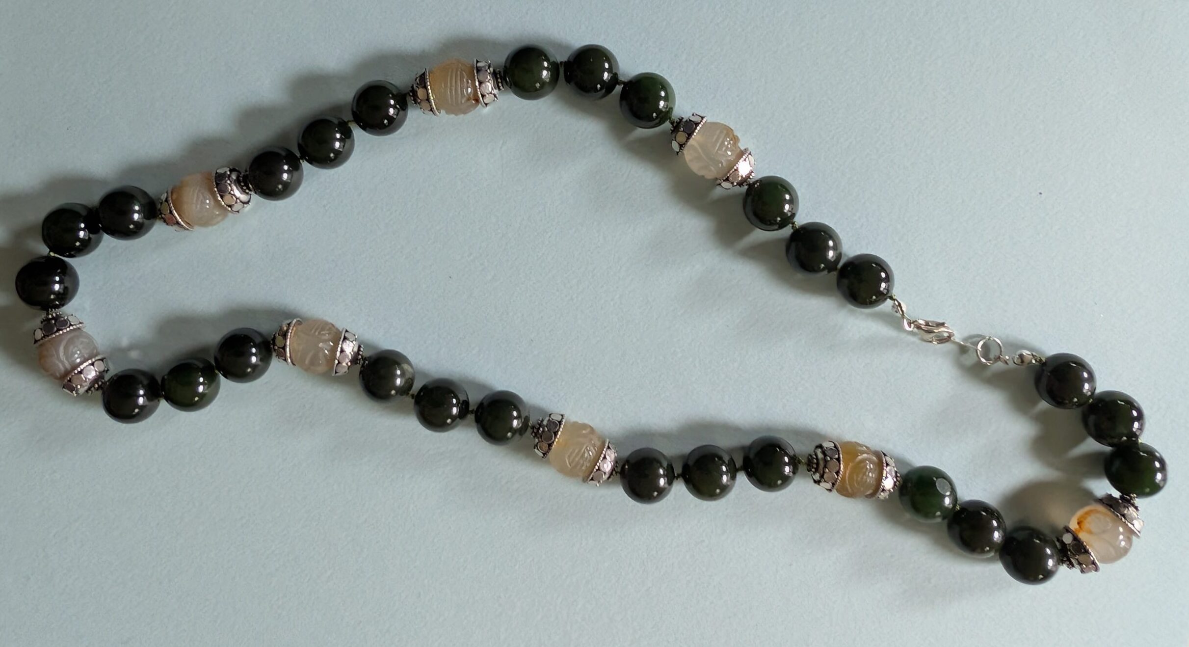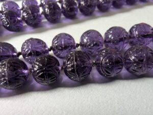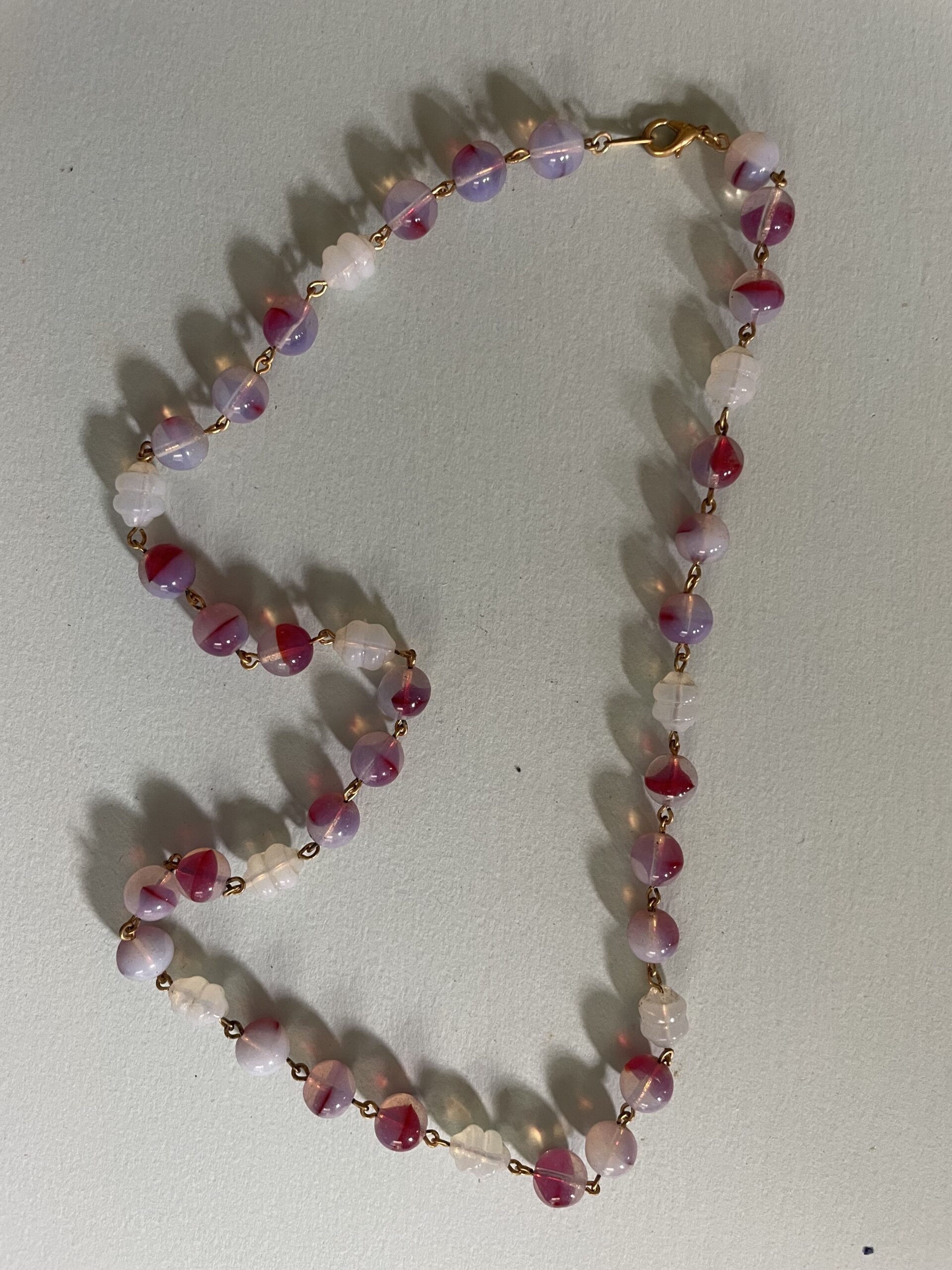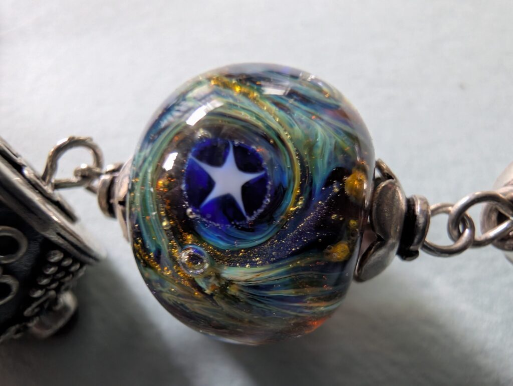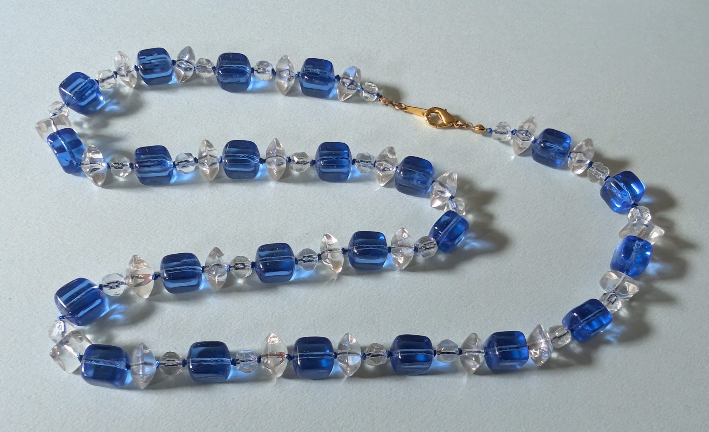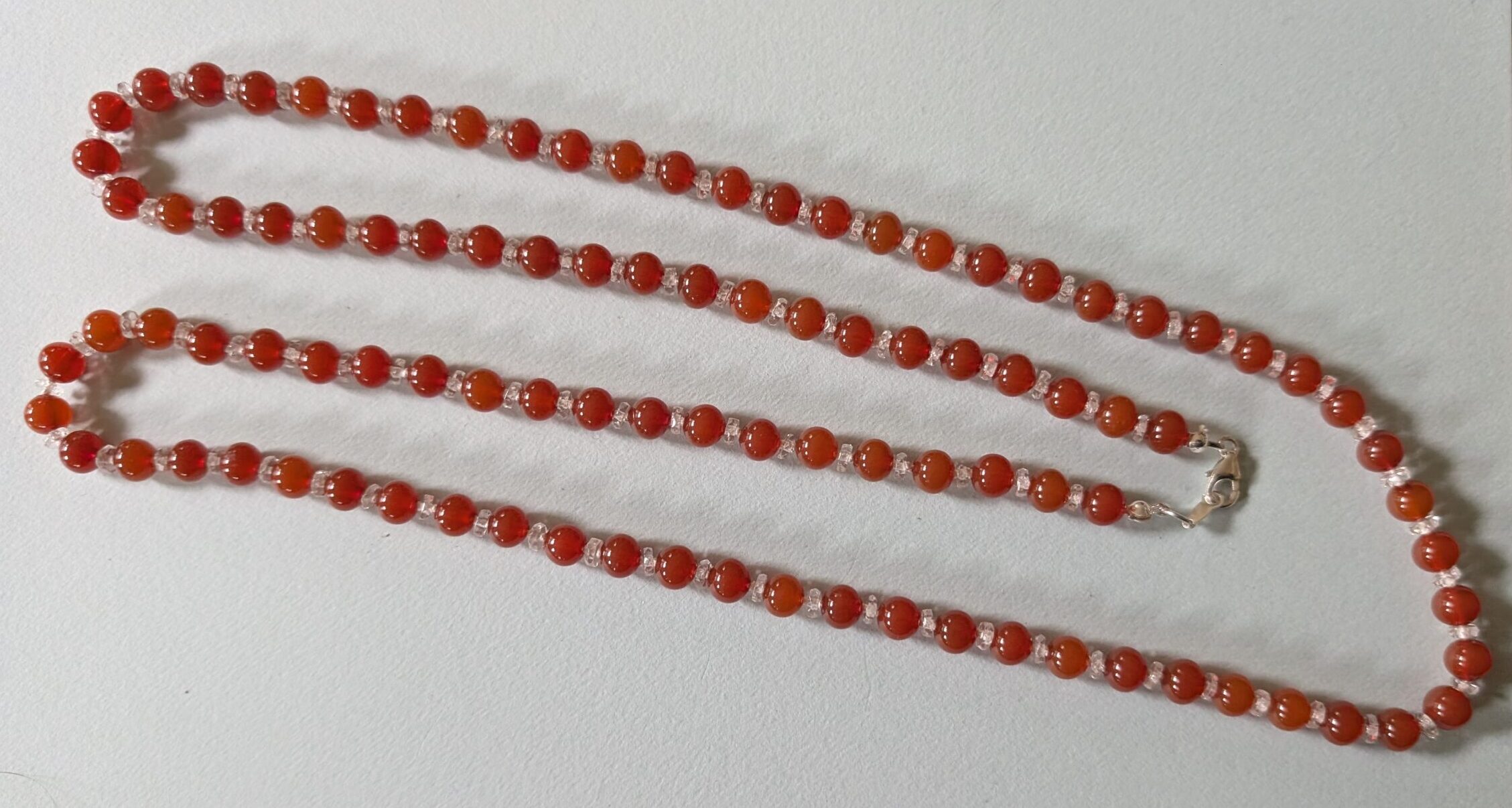 Necklaces are labeled to enable us to keep photos of the same necklace together. Numbers (e.g., “Eureka necklace 1”) have no significance other than the order in which we numbered them — that is, the numbers have no connection whatsoever with when they were made, type of beads, or anything else.