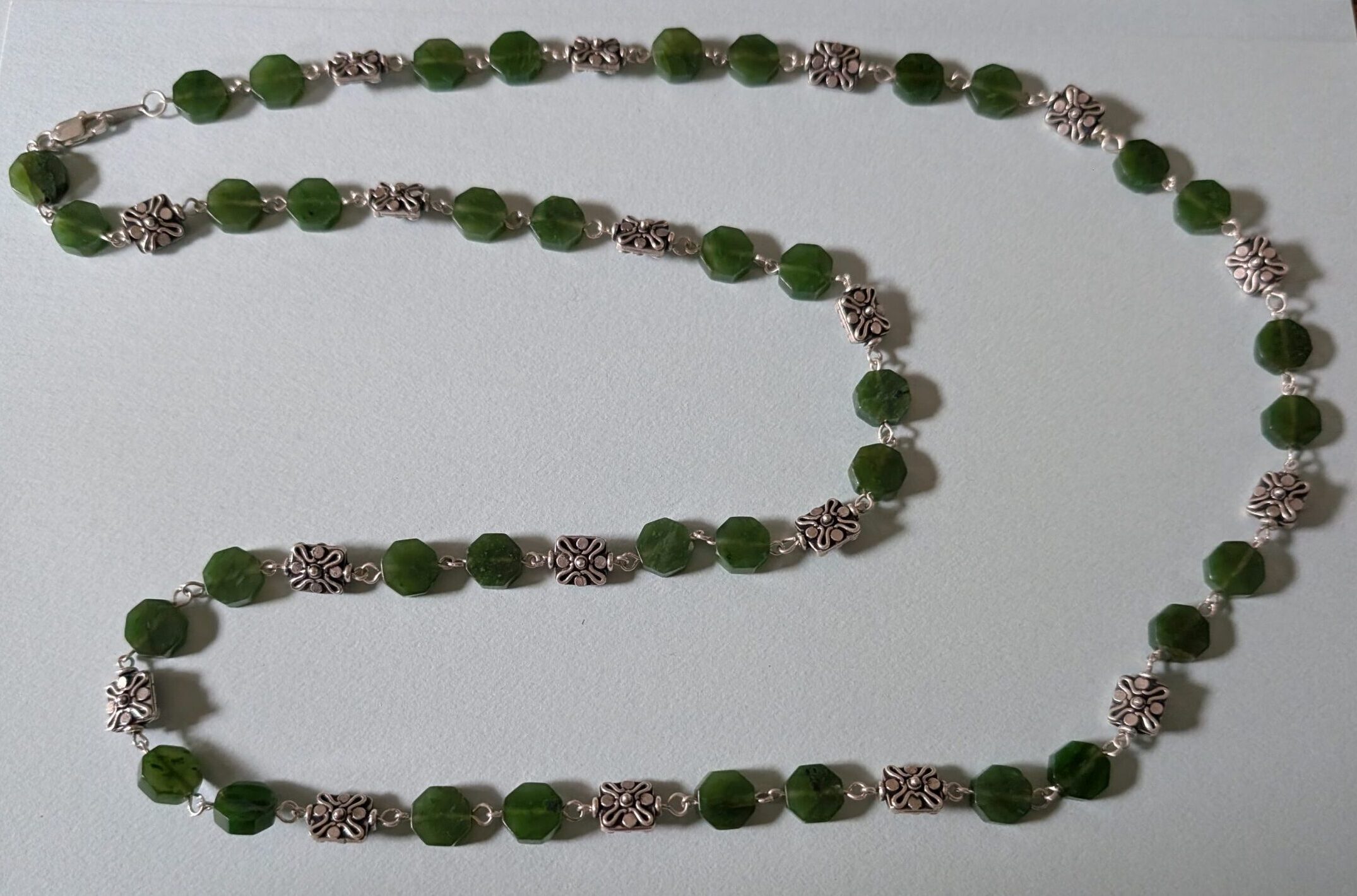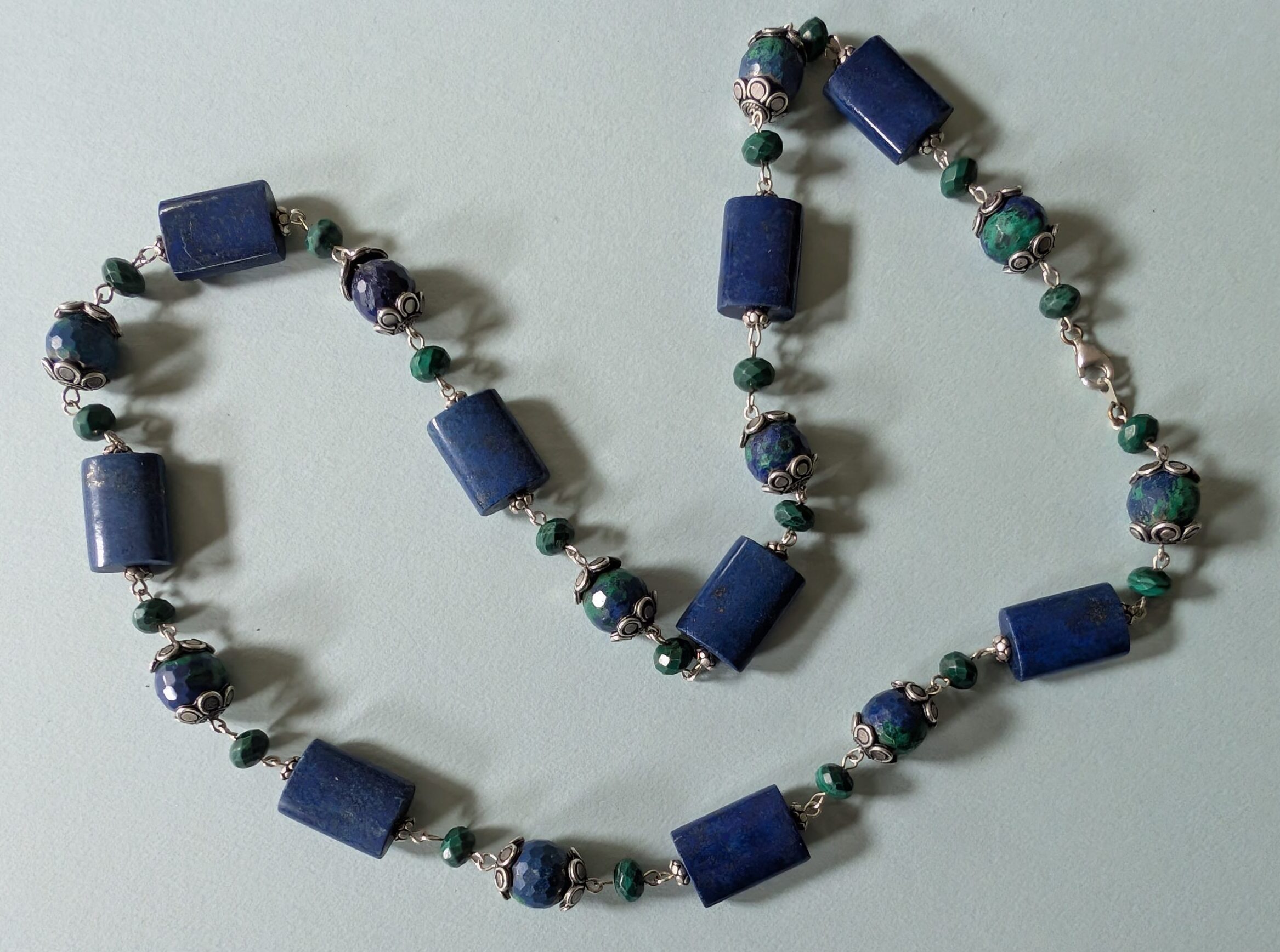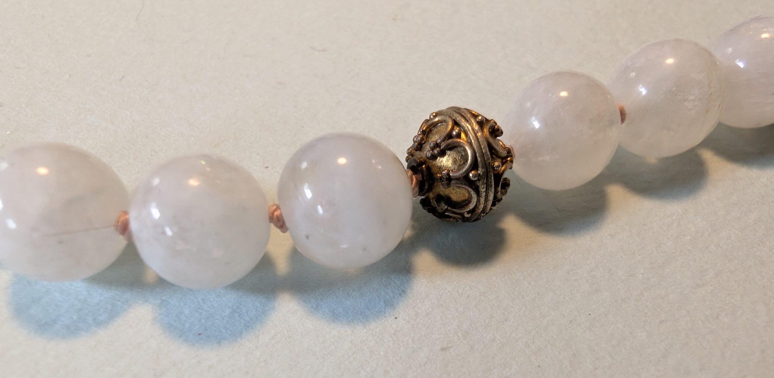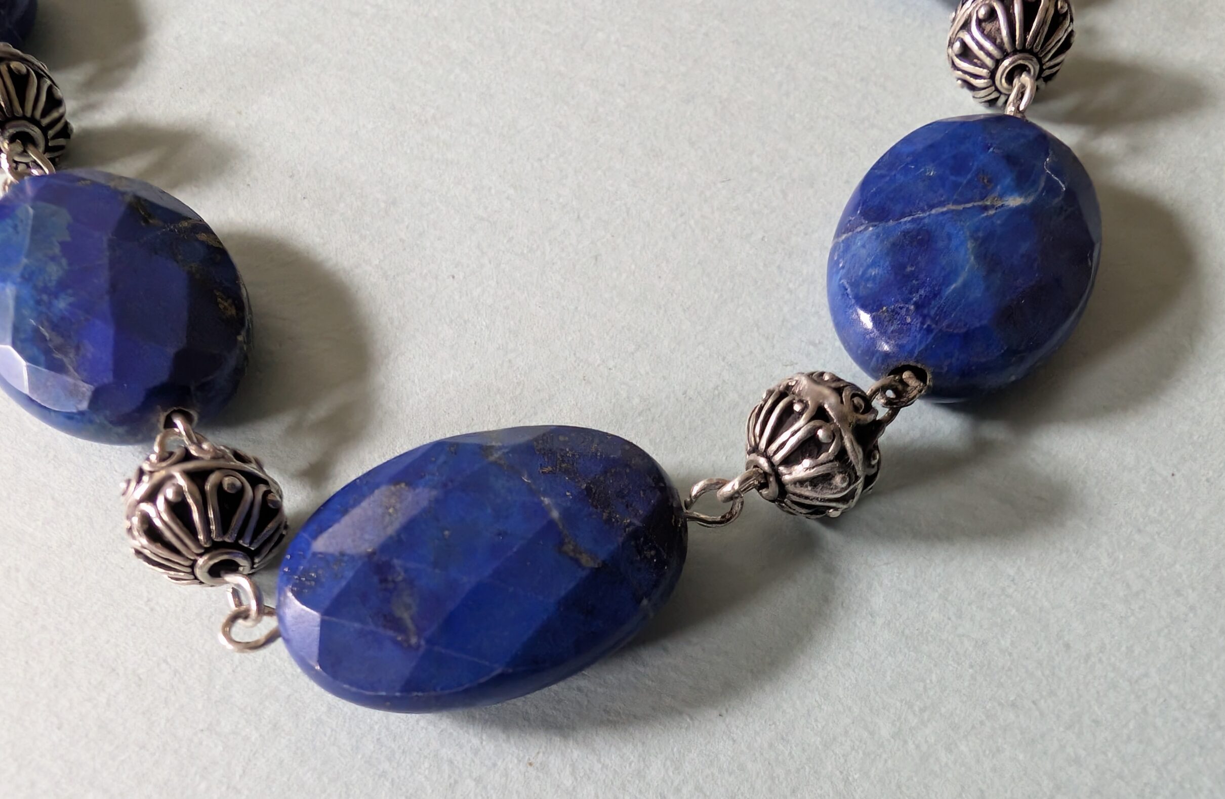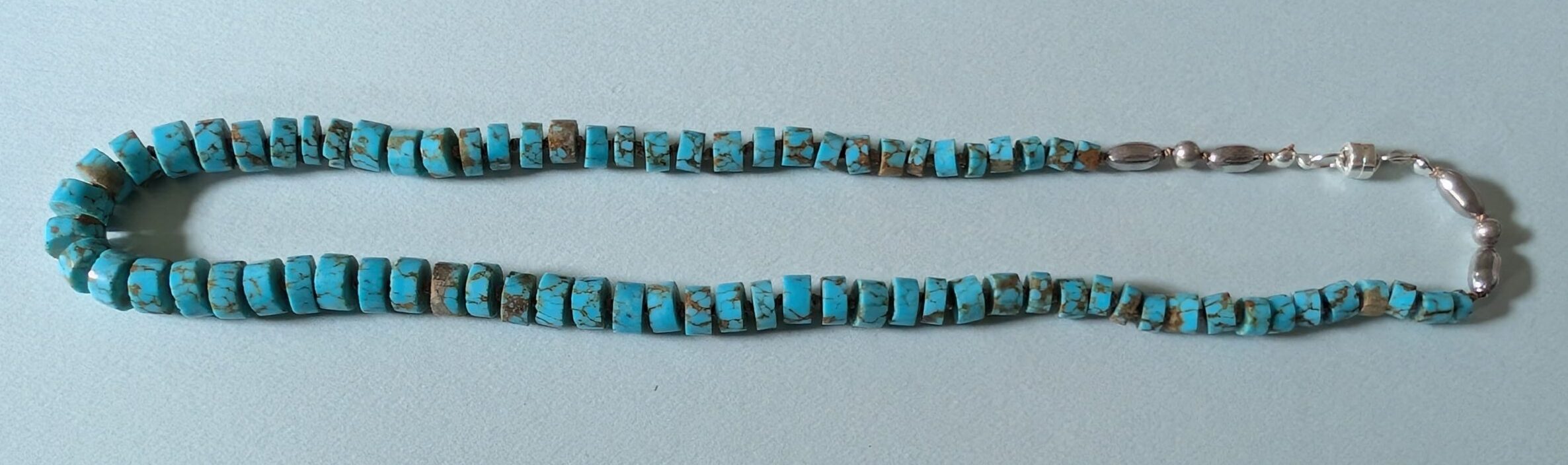 Necklaces are labeled to enable us to keep photos of the same necklace together. Numbers (e.g., “Eureka necklace 1”) have no significance other than the order in which we numbered them — that is, the numbers have no connection whatsoever with when they were made, type of beads, or anything else.