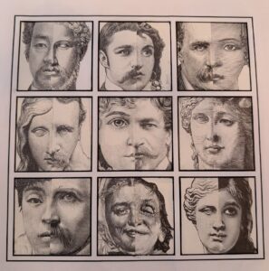 1990, “Music Has Charms ….” August 1990 t-shirt of the month. Collage, included in Ecstatic Incisions p.31