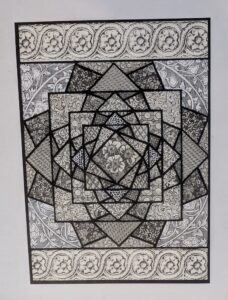 1990, “Music Has Charms…” Included in Ecstatic Incisions. This is a framed copy, hanging in Freddie’s home in Eureka. “Music Has Charms ….” August 1990 t-shirt of the month. Collage, included in Ecstatic Incisions p.31