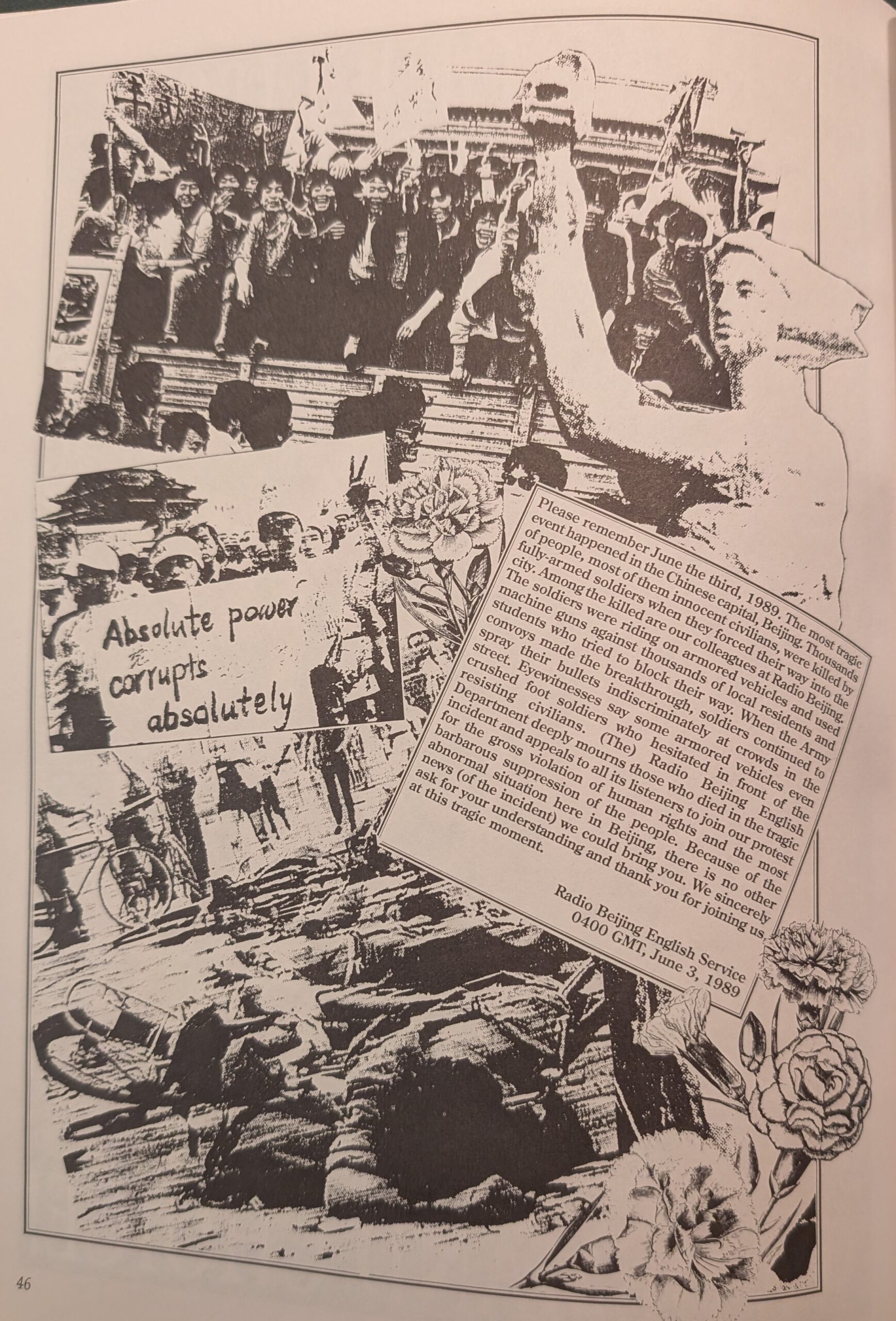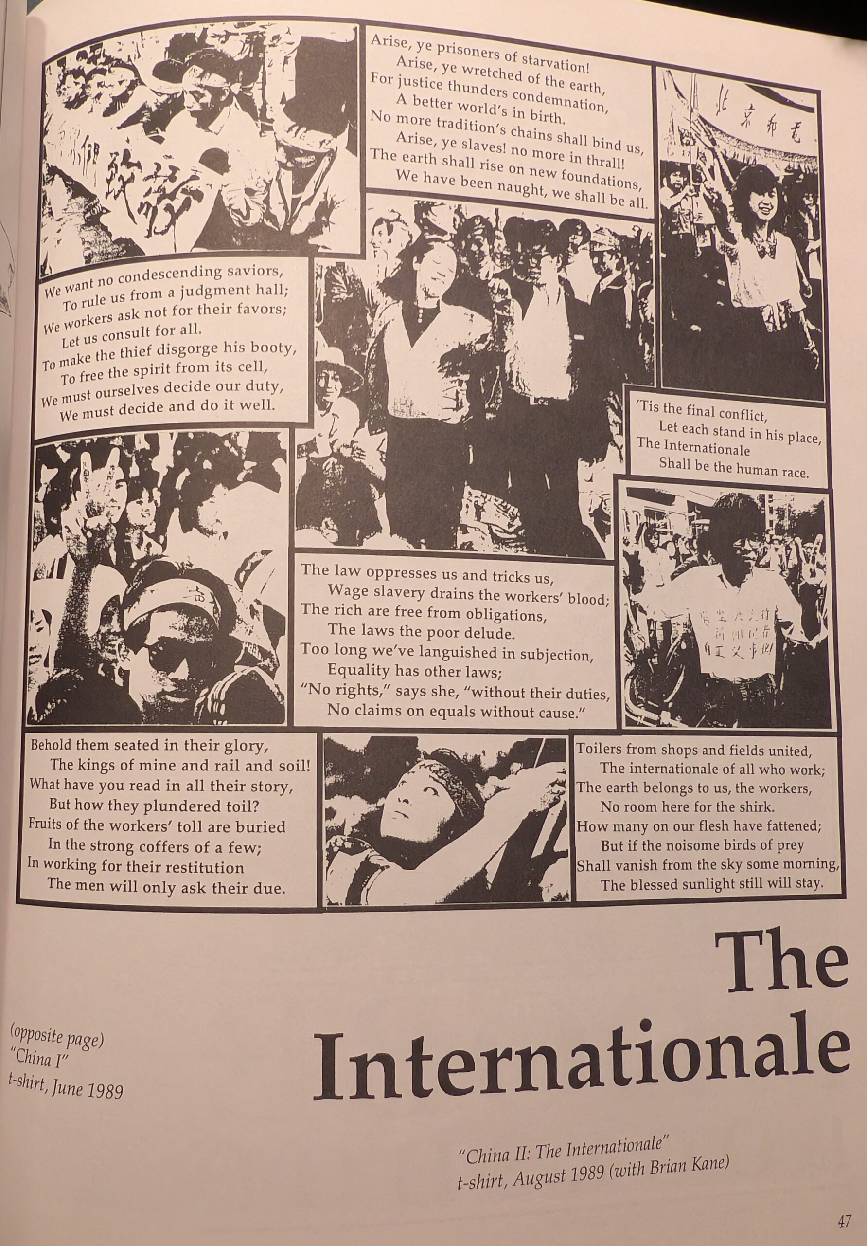 1989, “China II: The Internationale”. t-shirt, August 1989, with Brian Kane. Included in Ecstatic Incisions, p.47.