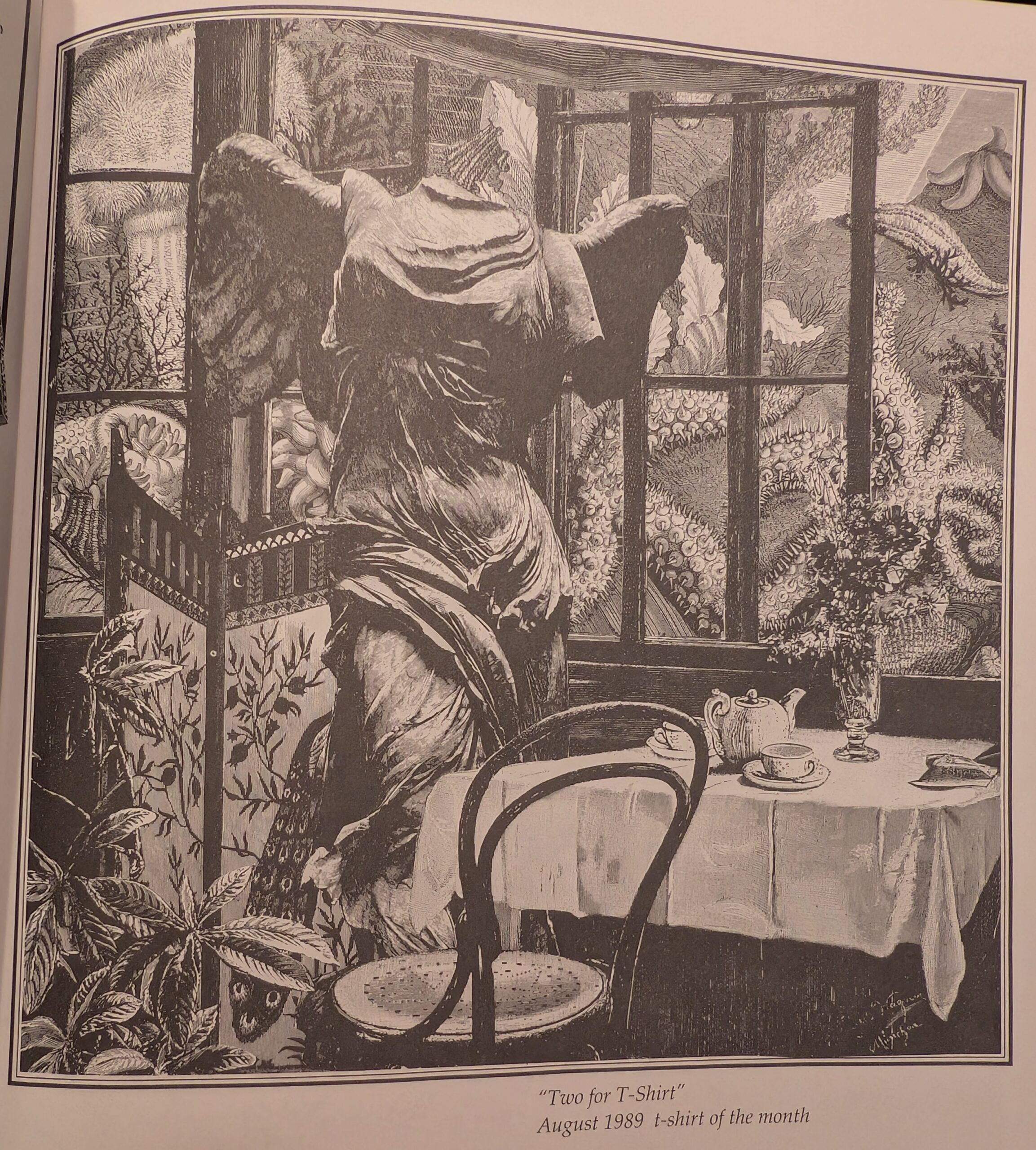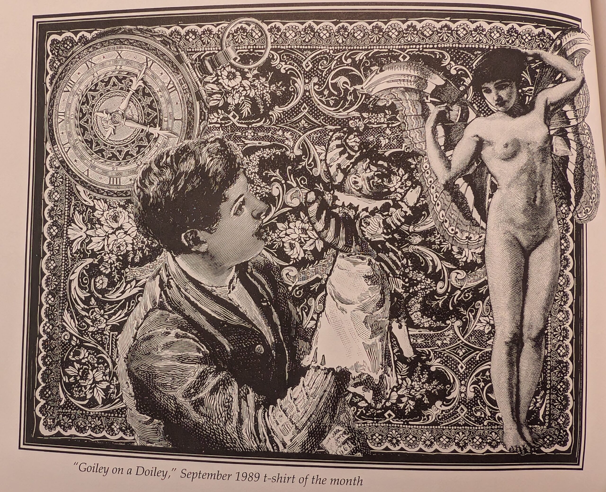 1989, “Goiley on a Doiley”, September 1989 t-shirt of the month. Included in Ecstatic Incisions, p.8.