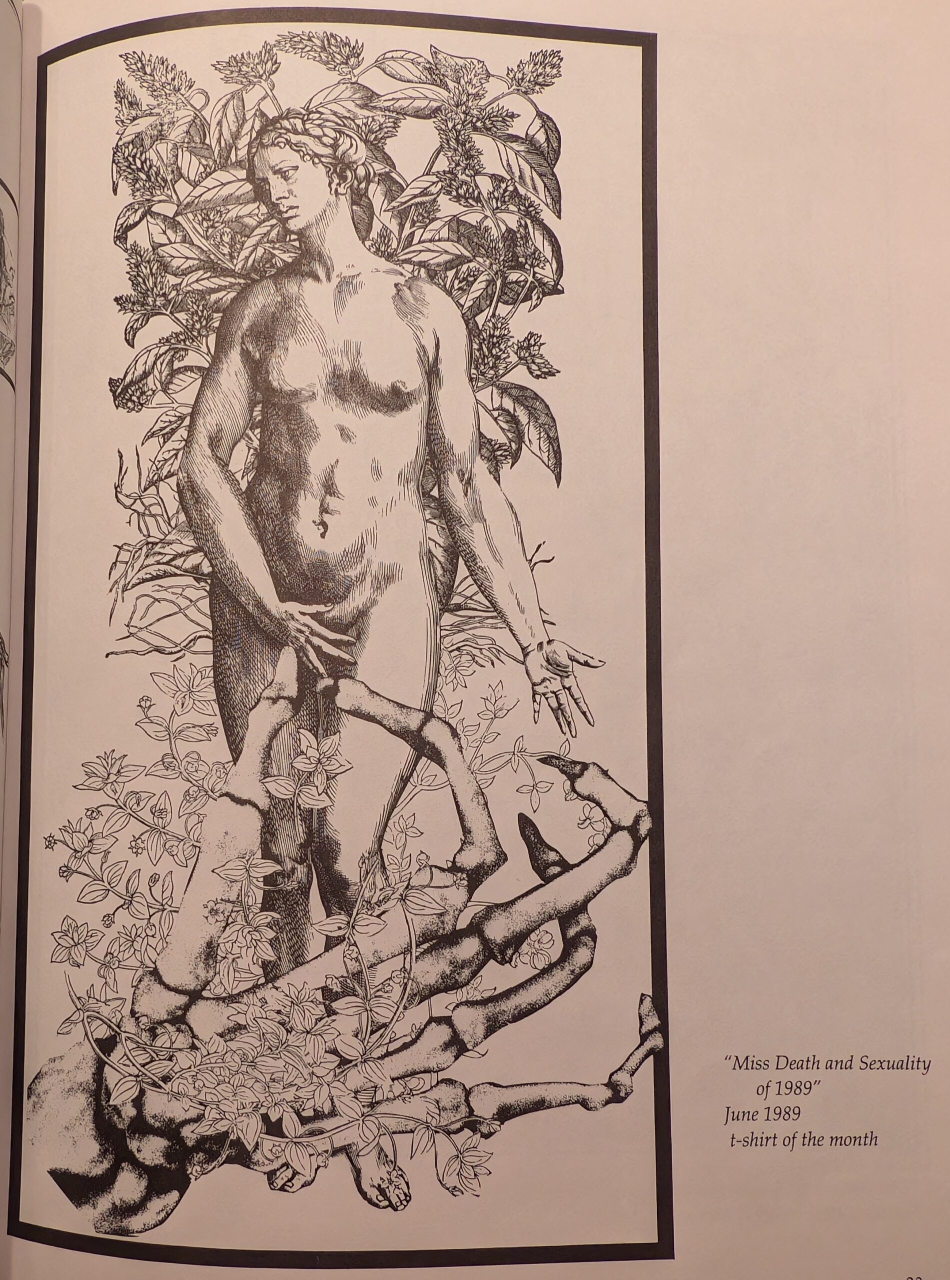 1989, “Miss Death and Sexuality of 1989”. June 1989 t-shirt of the month. Included in Ecstatic Incisions, p.23.