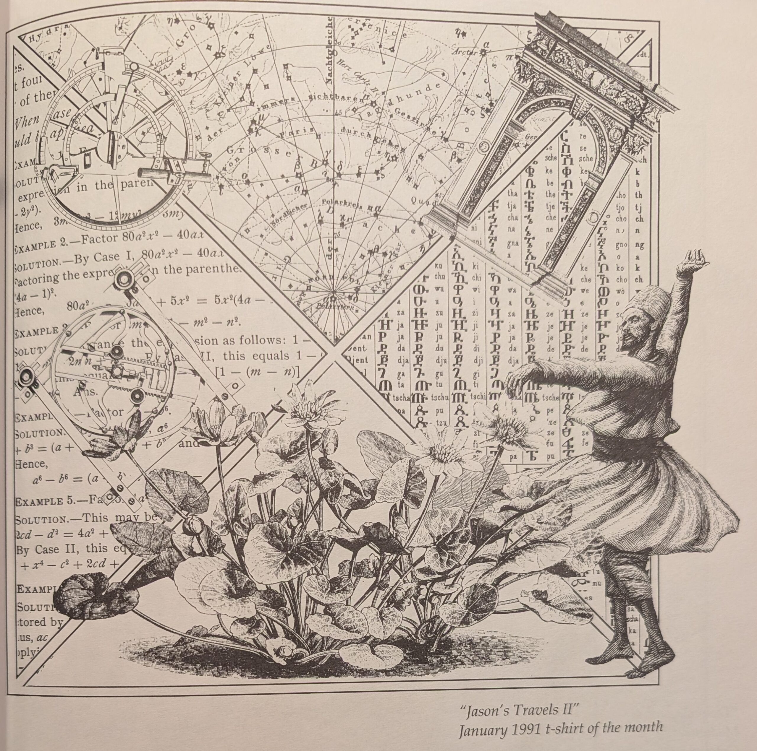 1991. “Jason’s Travels II.” January 1991 t-shirt of the month. Included in Ecstatic Incisions, p.27.