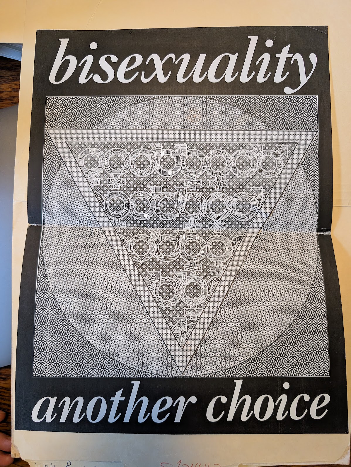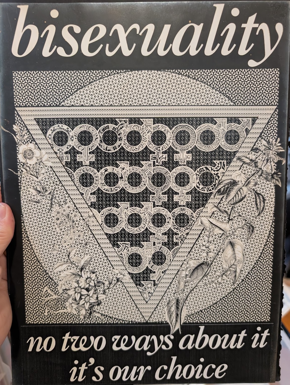 1991. “bisexuality another choice”. Included in Ecstatic Incisions, p.39 (“‘Bisexuality’ t-shirt, December 1991”)