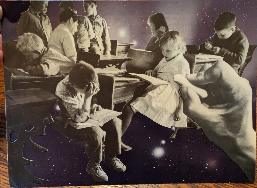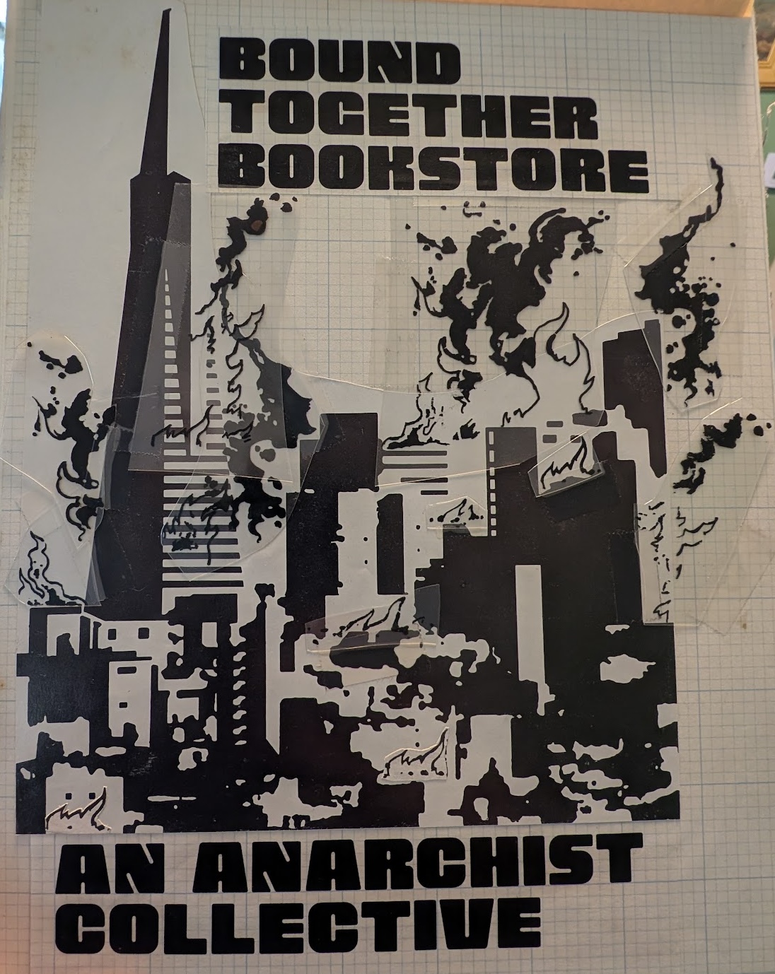 Original collage for T-shirt for Bound Together Bookstore, 1985; included in Ecstatic Incisions, p.7
