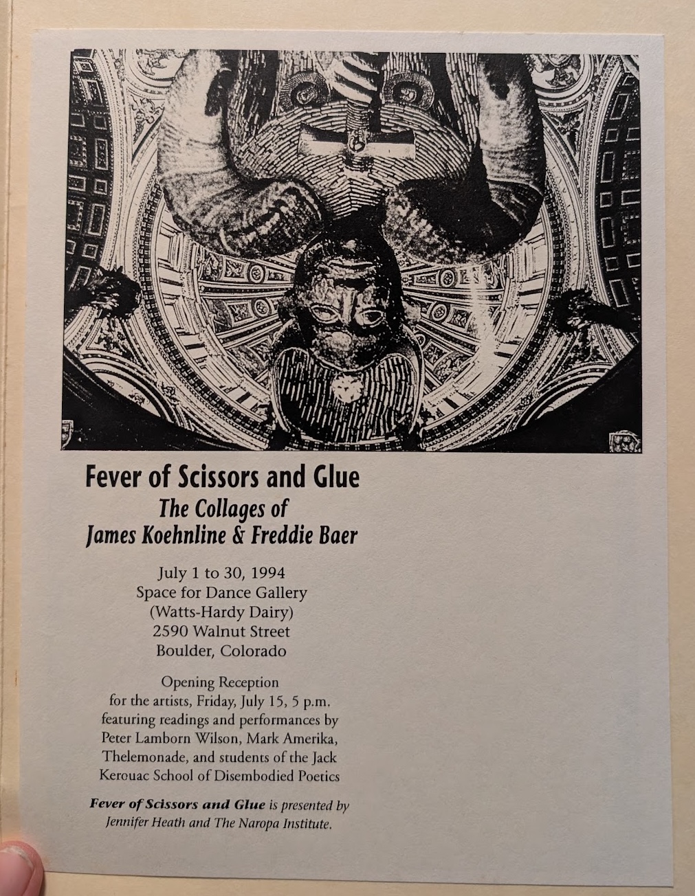 - Ecstatic Incisions (AK Press 1992) – A print volume collecting 40-ish of Freddie’s early collages.