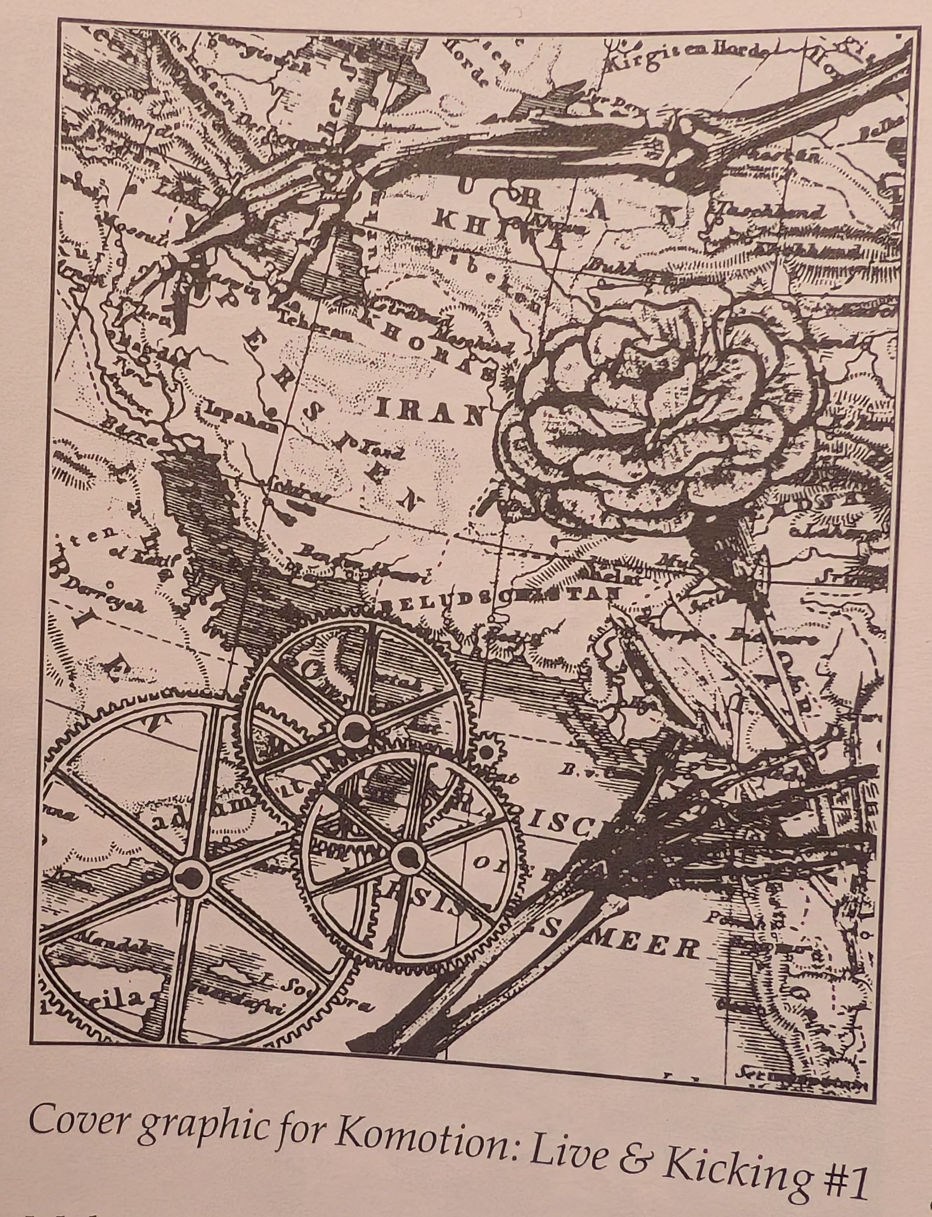 back of Catching Fish in Chaotic Waters, Nov. 1997 – collage illustration for “Against the Megamachine”