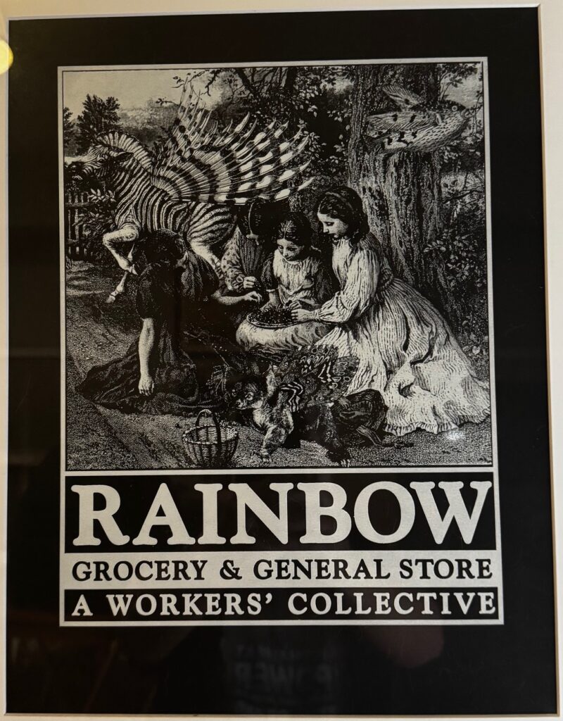 1991. Rainbow Grocery & General Store: A Workers’ Collective / collage. Included in Ecstatic Incisions, p. 42 (“t-shirt for Rainbow Grocery / General Store, Spring 1991)