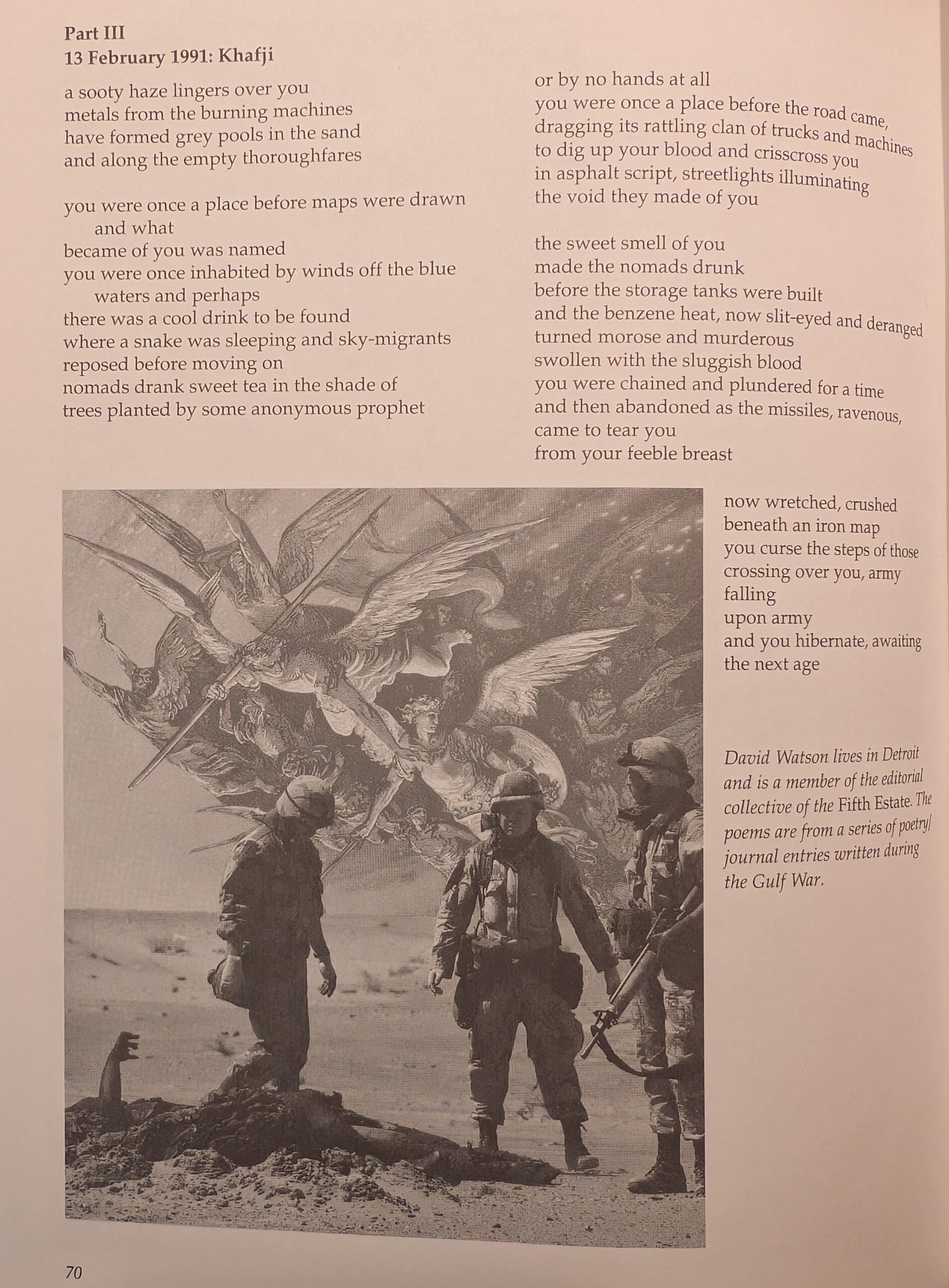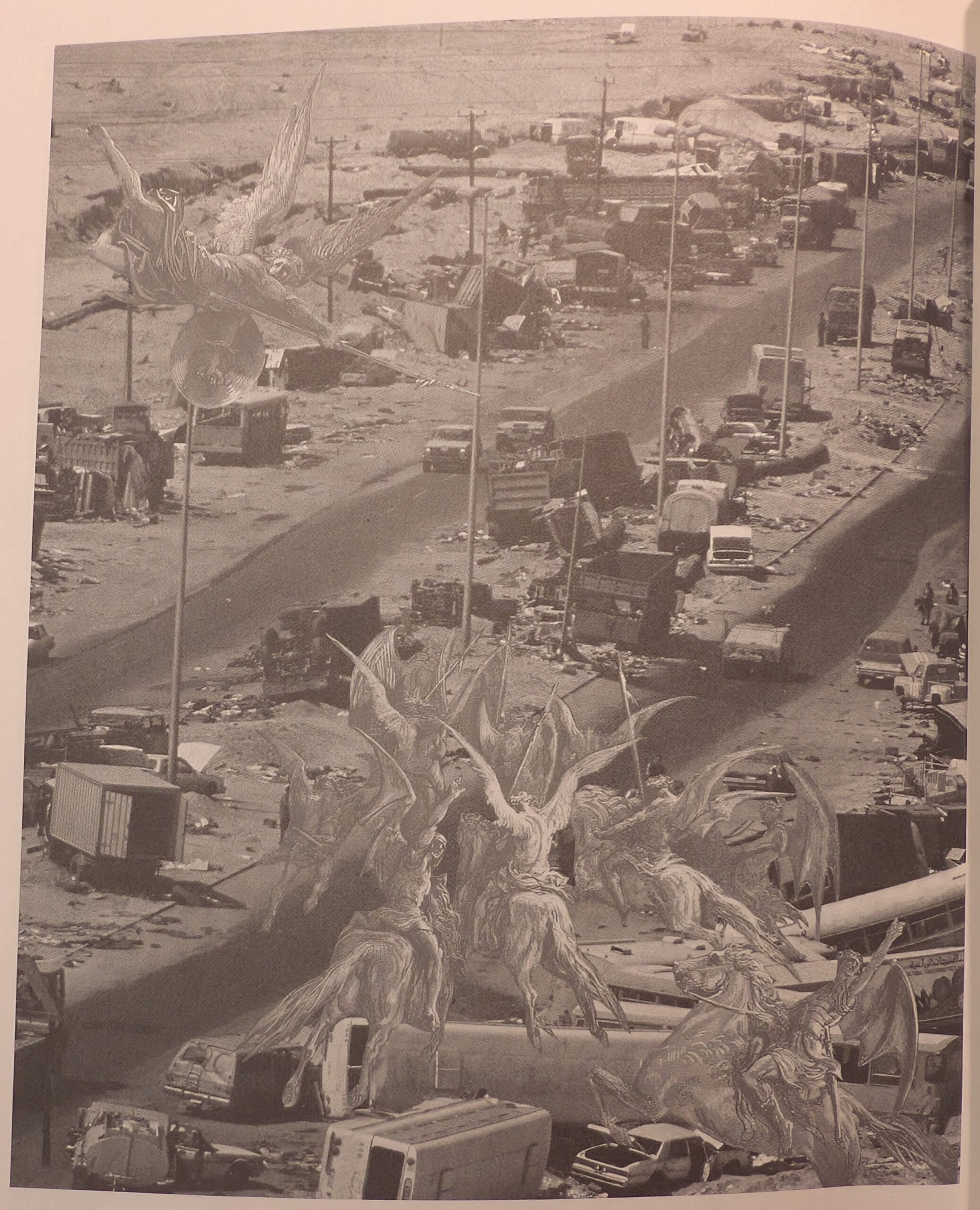 1991. Illustration 4 for “Tales of the War” by David Watson, published in Fifth Estate. Included in Ecstatic Incisions, p.70.